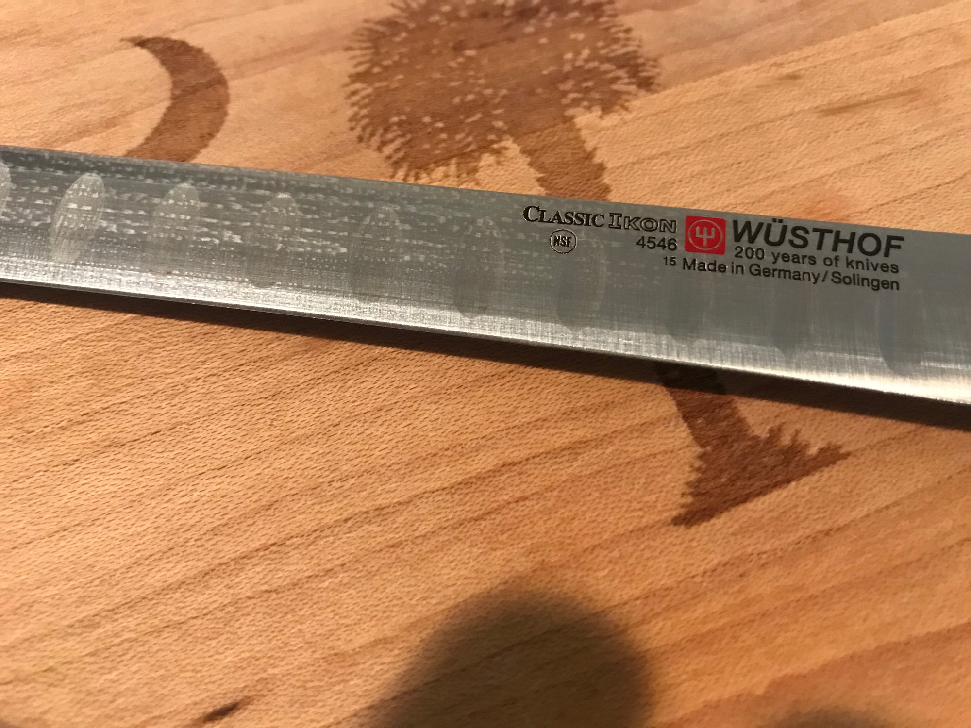 • @SSQUAL612 Here is s picture of the Salmon Slicer. It is the Wusthoff Classic Ikon 12" salmon slicer.  It is a great knife, cuts paper thin slices without any effort.  I ordered online from Williams Sonoma.