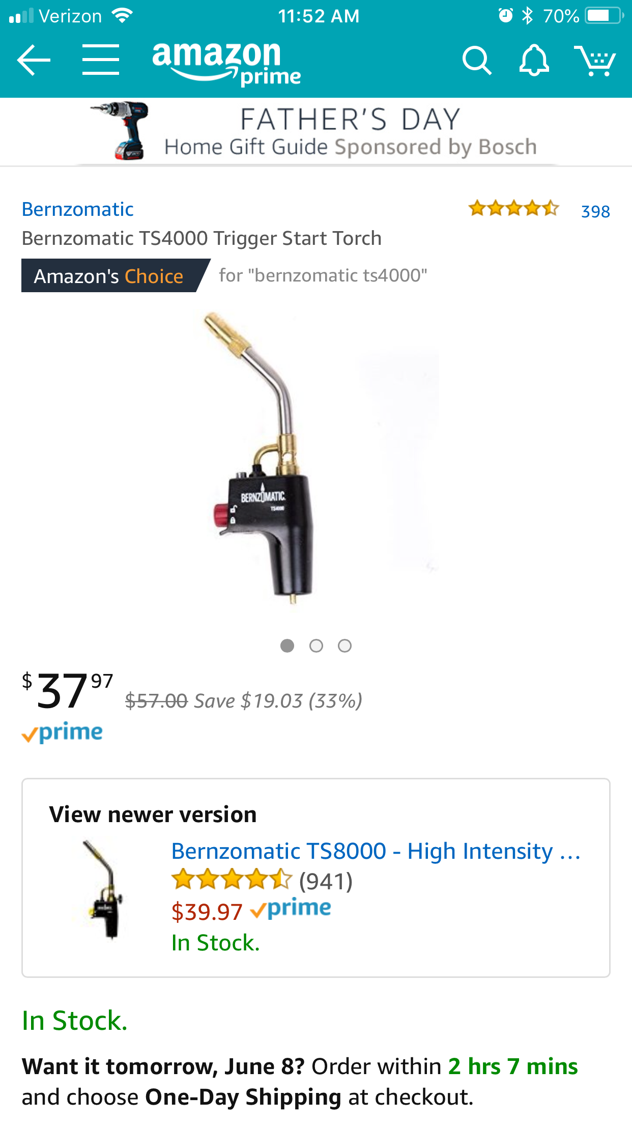 Then I bought a MAPP torch, and it worked like a champ. I kept hearing people claim that propane works just as well in them, so what I'm using now IS propane, and it works fine (I actually do think I liked it a little better with the MAP gas, though), and it works quite well. I think what you need isn't so much the different gas but a torch that's designed better for being used upside down. In my experience, anyway, a "regular" propane torch doesn't work well because it's not designed to be used pointing downward. -
