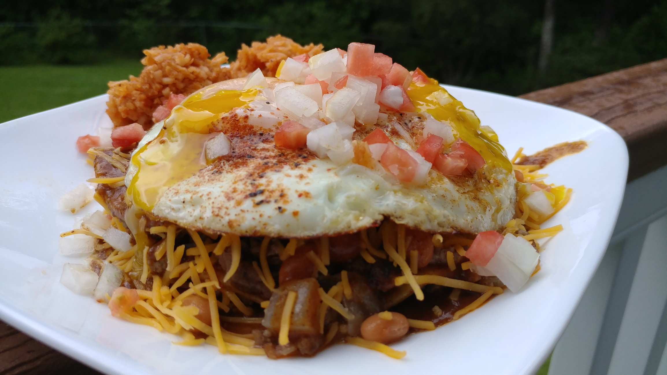 NM Style Enchiladas. @HuskerMaMa used Red NM Hatch Chile. With farm fresh eggs sunny-side up. OMG!