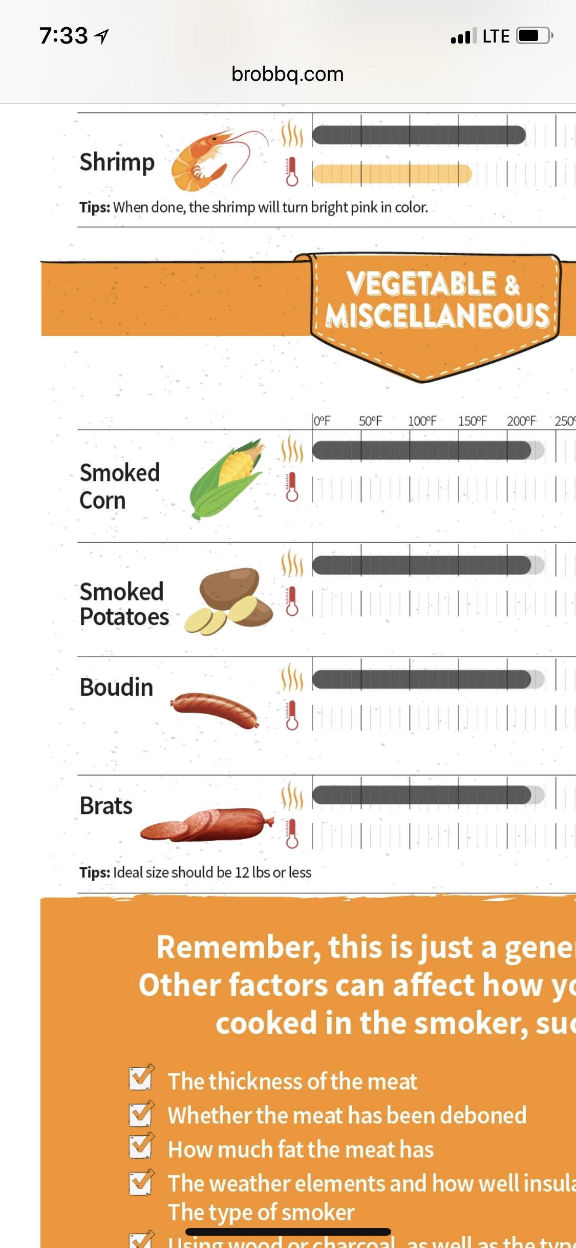 Nice thought on the brats, but recommending cooking a tenderloin to 200º is just so wrong.The Cen-Tex Smoker said:I love this site. Anyone who puts Boudin and Brats under the vegetable section can’t be all bad! Also, they say to keep your brats at 12lbs or less. Just a tip though. If you want a 15lb brat, go for it. .....Southeast Florida - LBGE