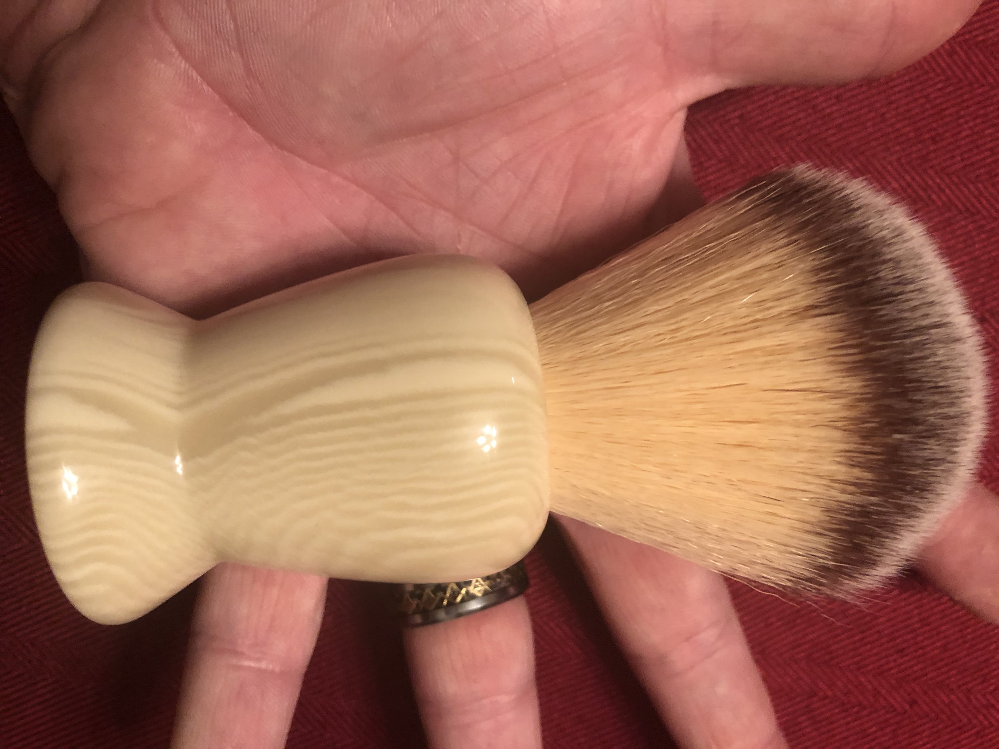 Ron, I got a new shaving brush today. The RazoRock Monster. It’s a plissoft synthetic with a 26mm knot.