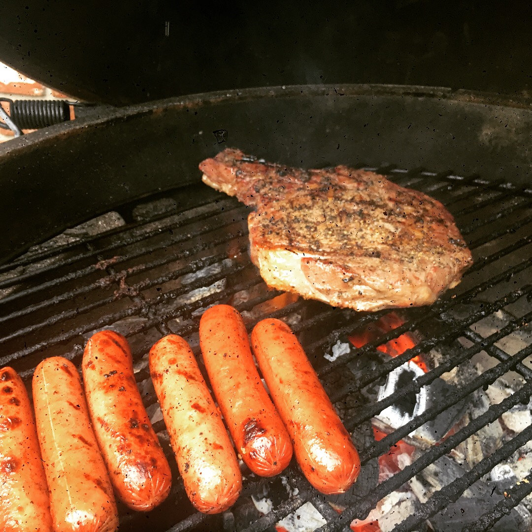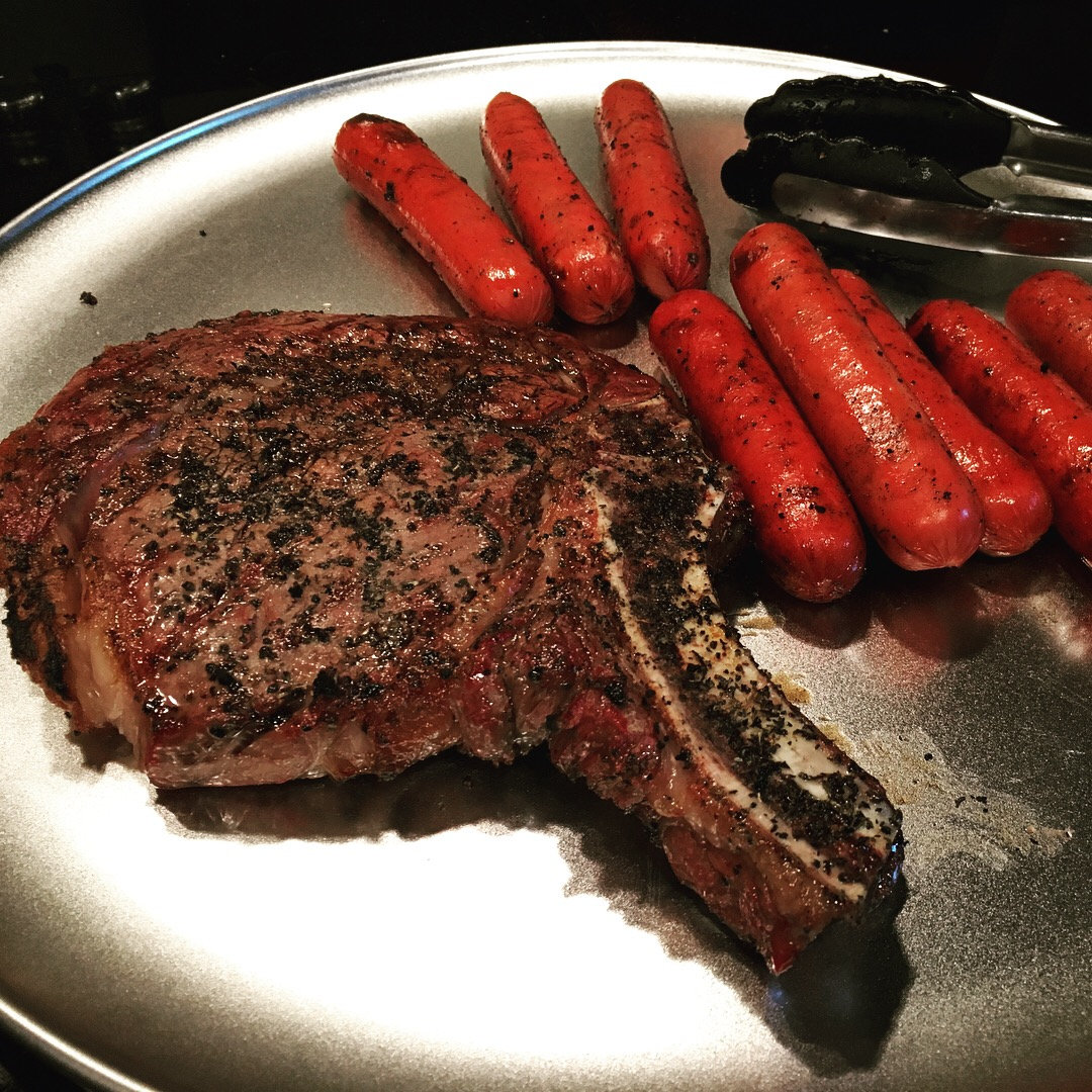 nothing wrong with snacking on a frank while your bone in is cooking. This turned out amazing.