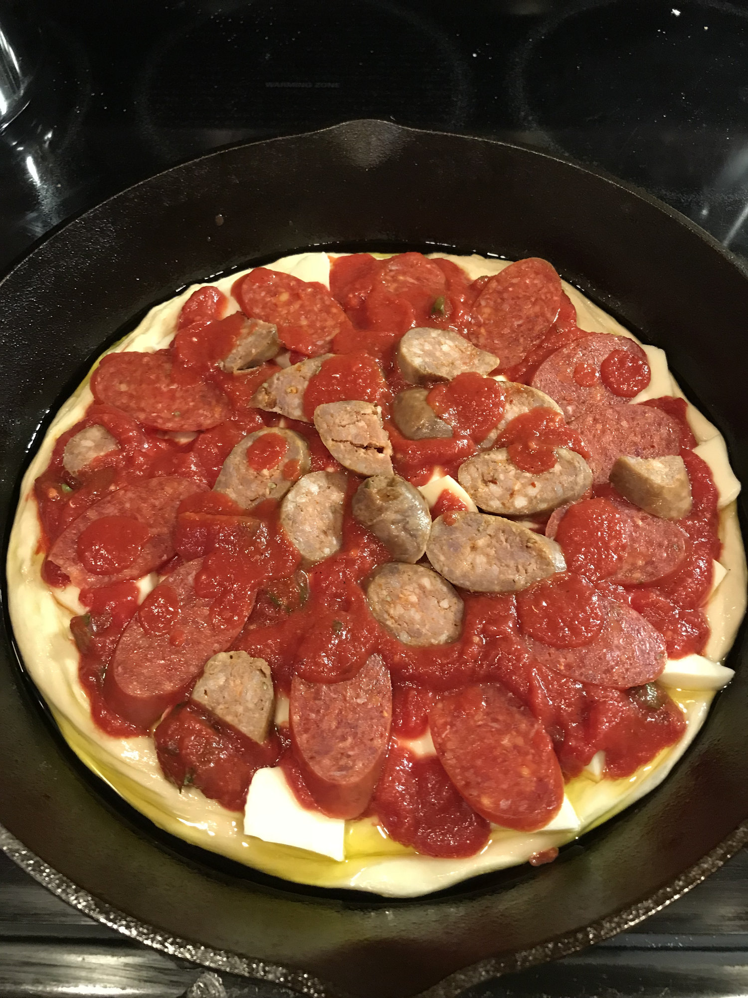 Comments: mostly followed dough recipe but it didn’t yield As much as expected. I used maybe 2/3 and thought it was just barely enough (I know, recipe called for 2 10” and the difference in area is substantial). Maybe next time I will raise above felt line - bottom was as well cooked as I might like, but the top could have been a little more.