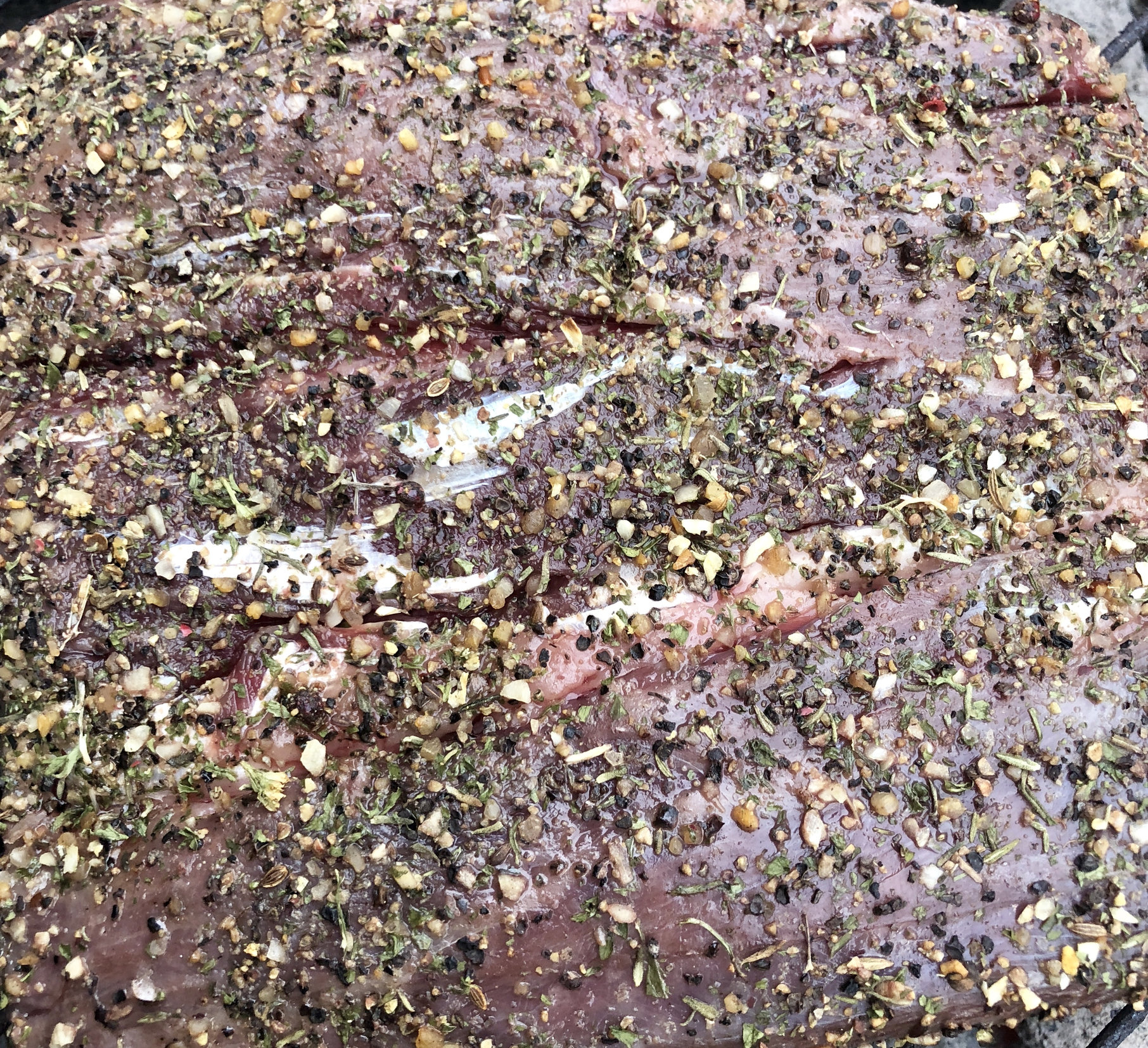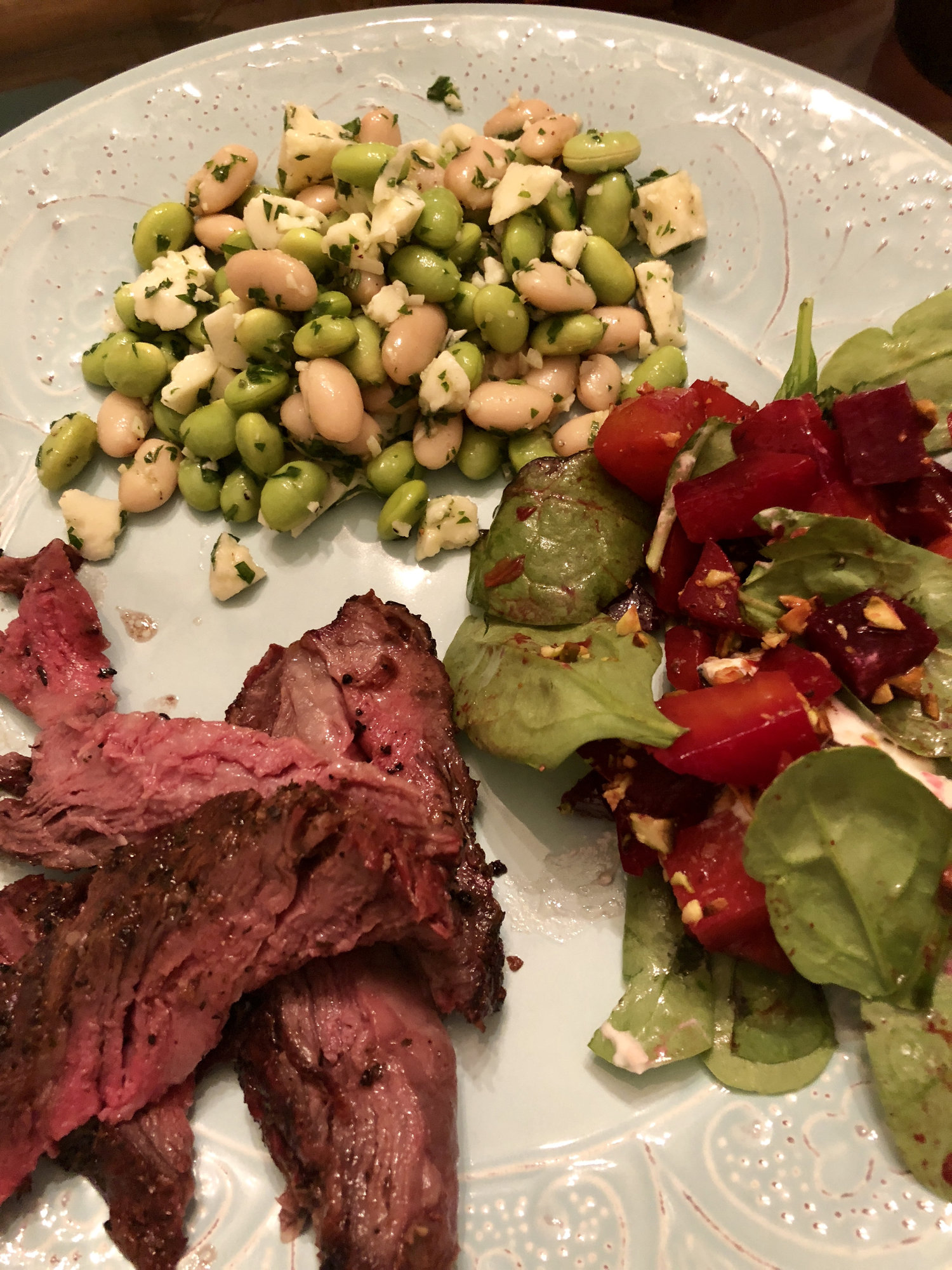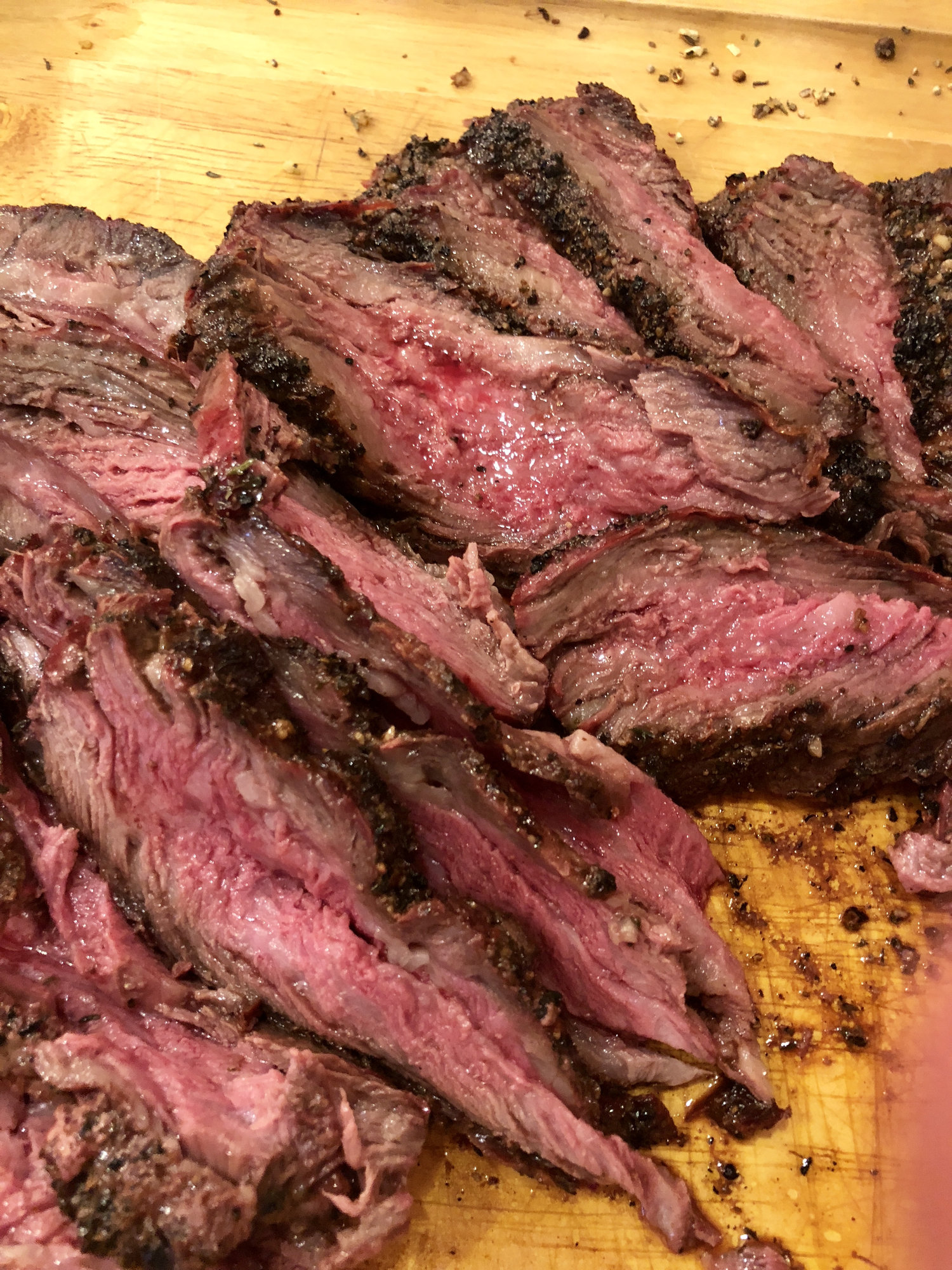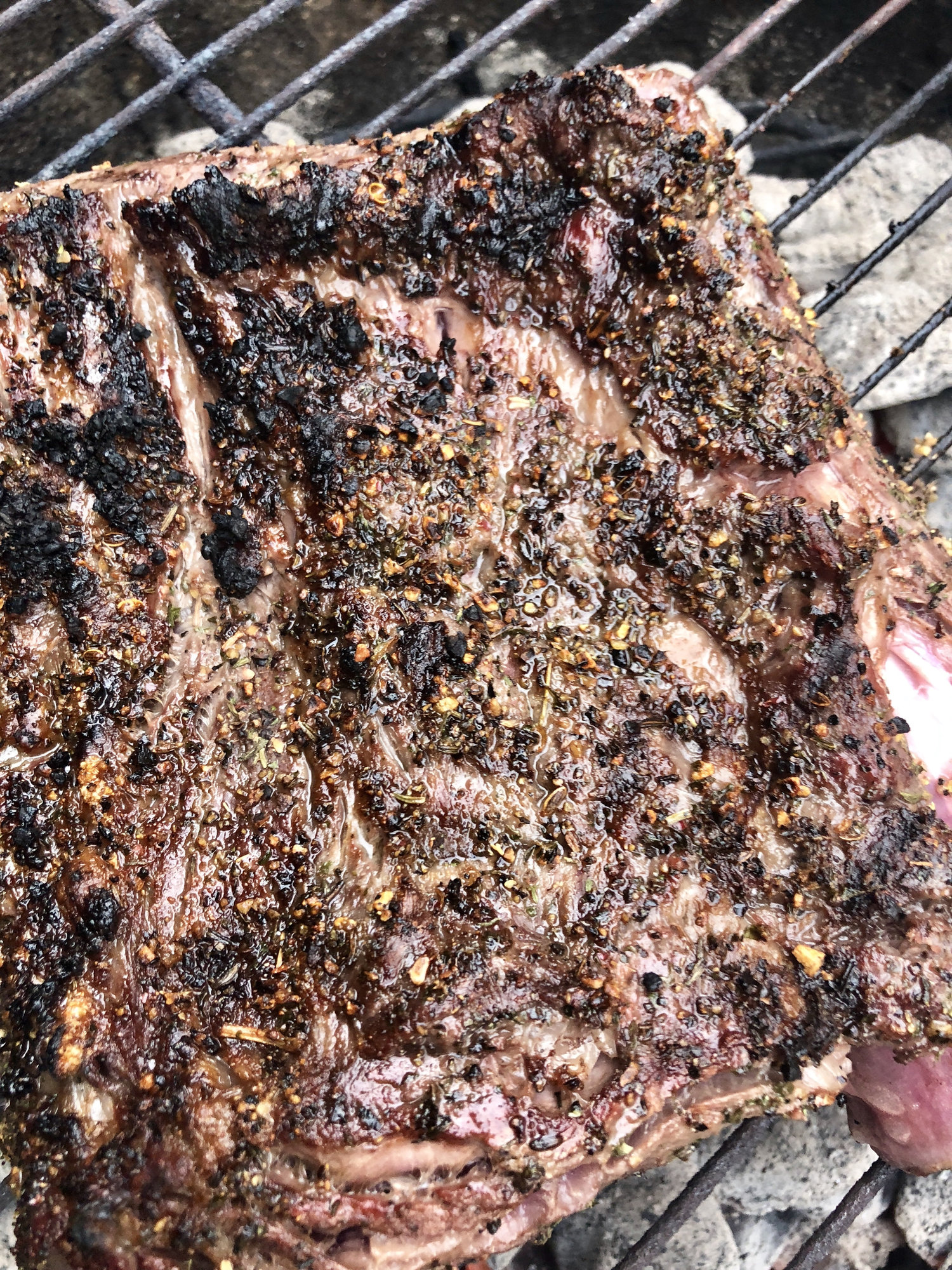 At the beach, no egg, no lump, SRF cap steak on Weber kettle — don’t ask about the fuel, it’s too damn painful to admit.