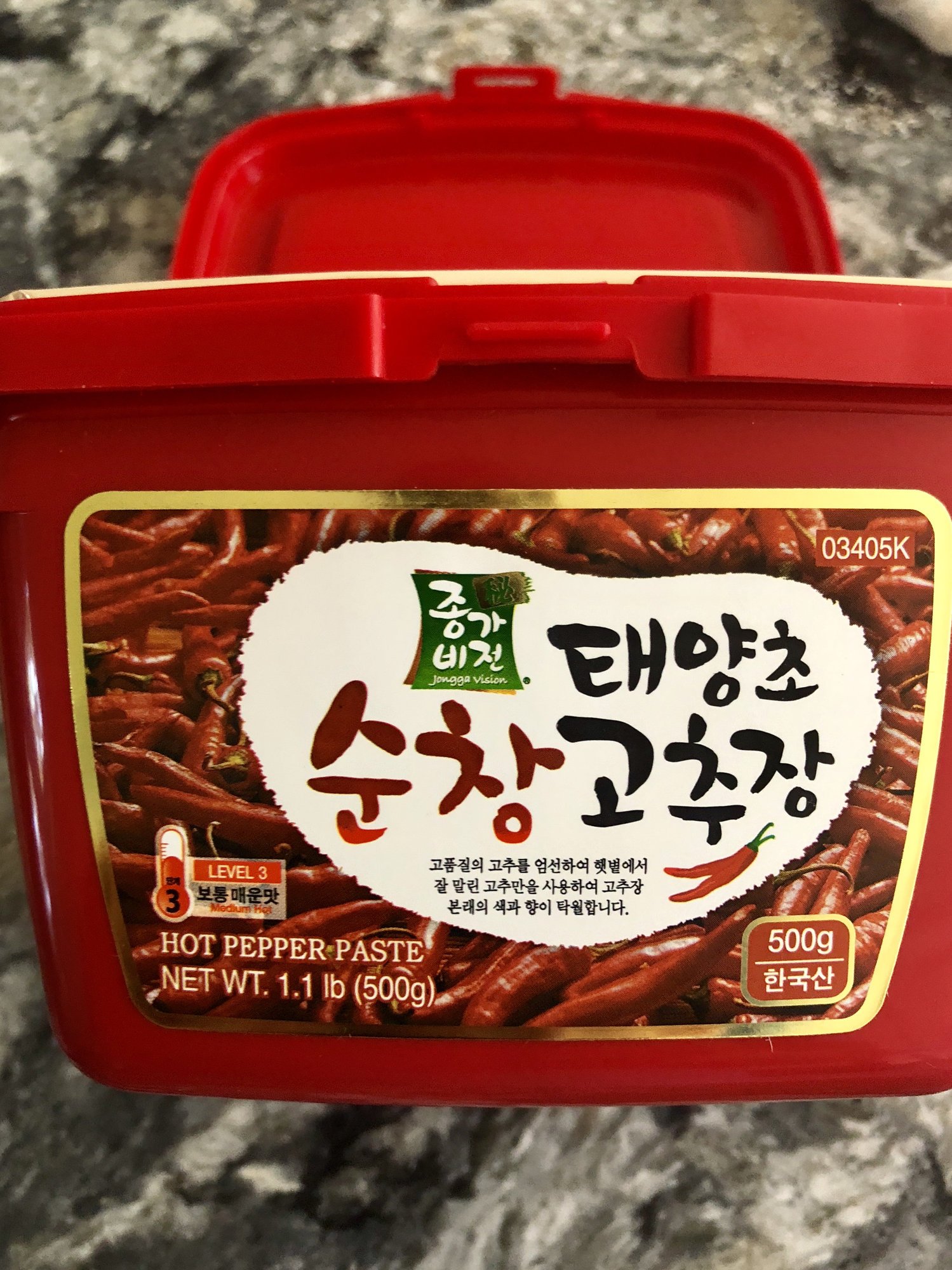 Wings, for sure — over 3.5 lbs of big fatties from the international supermarket.  Gojuchang, very possibly — sourced from the extensive Korean aisle in the same place. It used to be a Pathmark and is a huge, awesome place filled with all sorts of stuff you can’t get anywhere else around here.