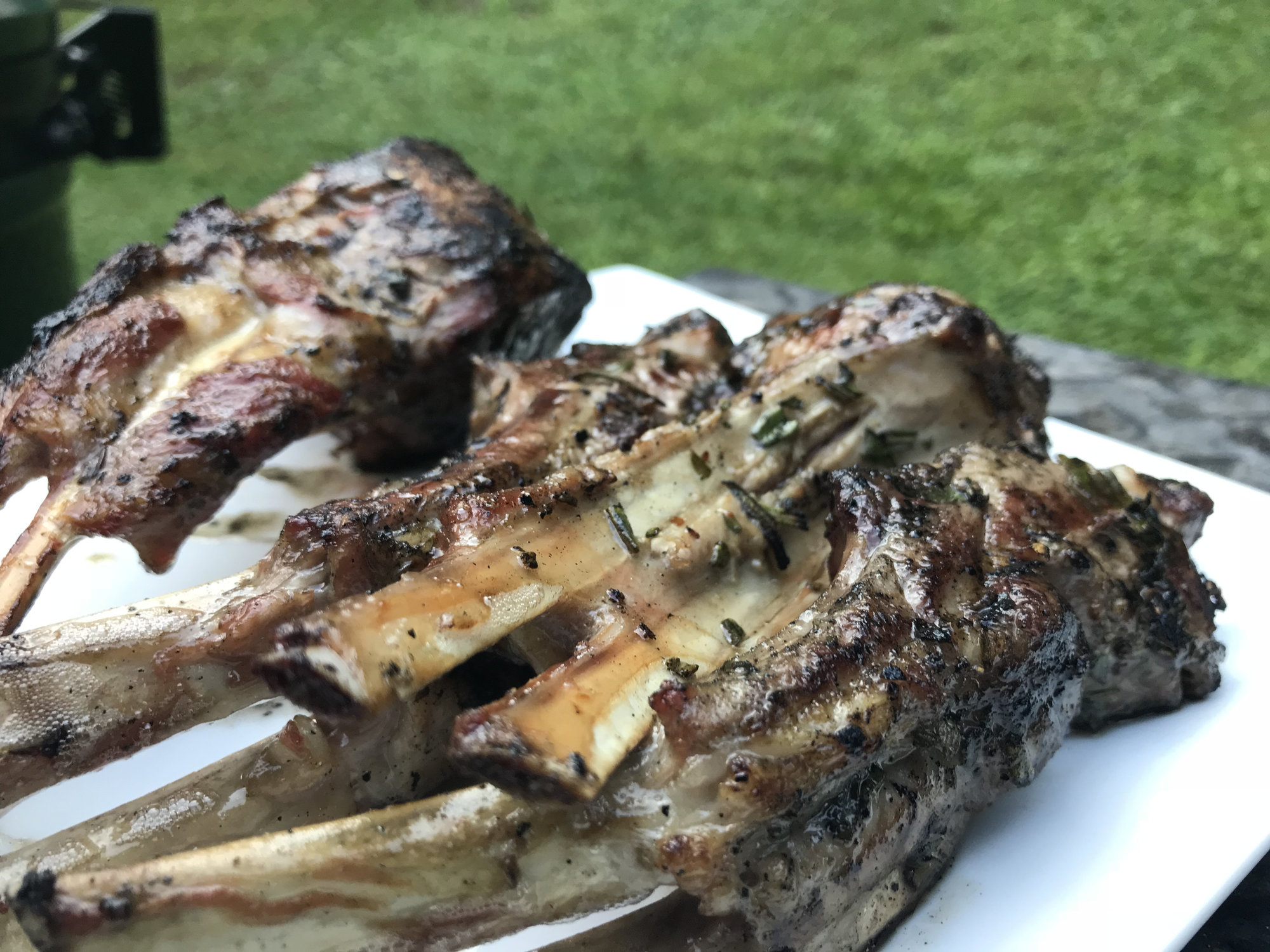 its the fat. try cooking the center cut chops, and making kabobs from the leg, all fat removed. i like a 450 sear wth some charring and a red interior. used rosemary for the skewers here, didnt hurt