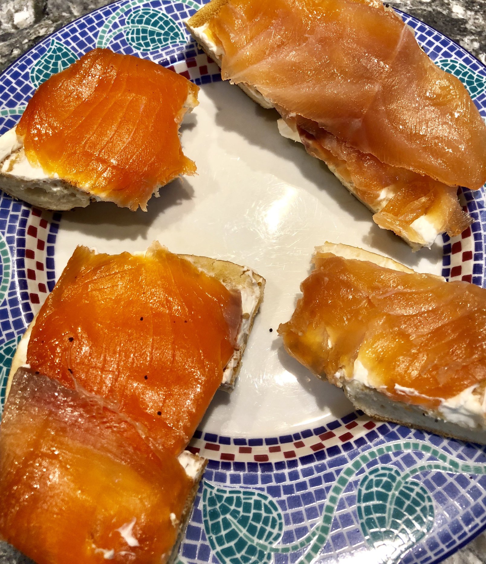 I just sampled both of them and honestly can’t say that the $26/pp is that much better than the $7/pp. SWMBO says the less expensive (Atlantic) is sweeter than the more pricey (wild Alaskan) and I agree. The Alaskan has the rich, deep color, was much more moist, and had a decidedly stronger flavor — which all are characteristics that I love. At 3x the price, not sure it’s THAT much better tho. Bottom line:  cold smoked salmon rocks.