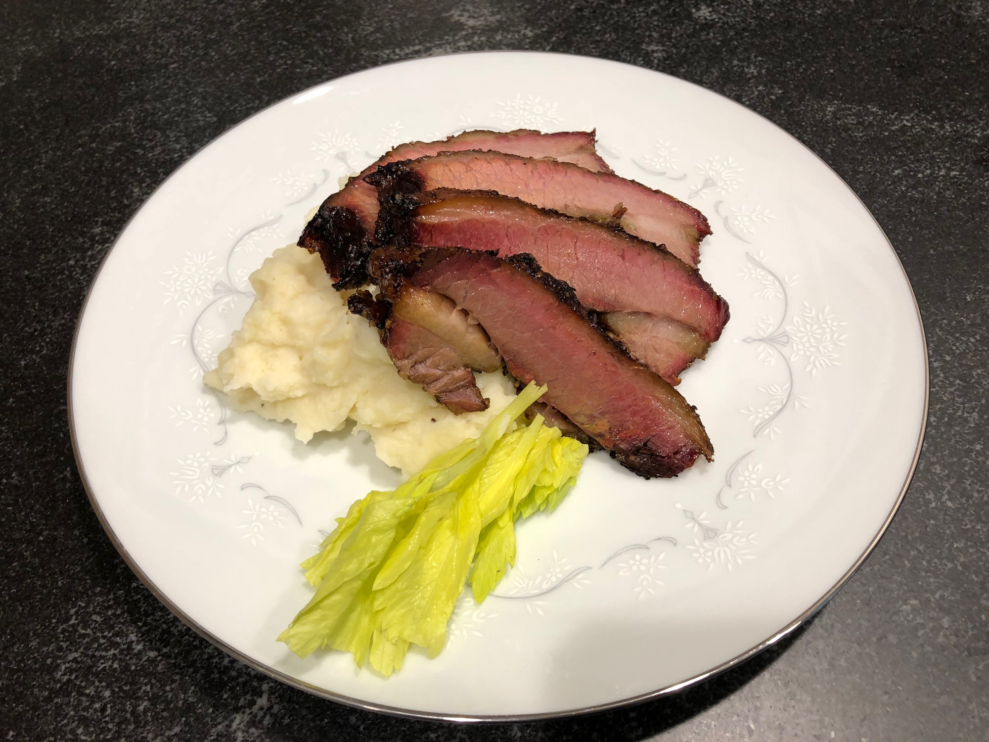 The slices are only 4-5'' long. I spritzed it with apple juice/apple cider vinegar 50/50 mix a couple times. It was pull apart tender. Good smoke flavor. I took a video of a 1 finger press and it oozed juice. This has me stoked to do another, I just hope I can repeat this cook again.
