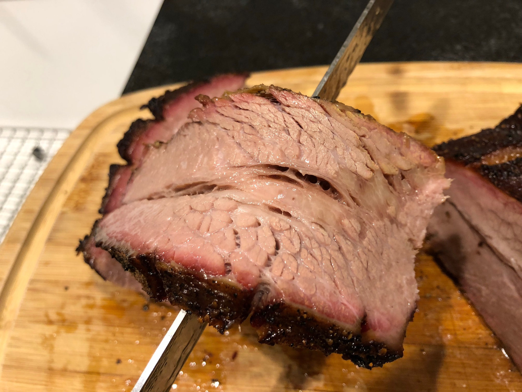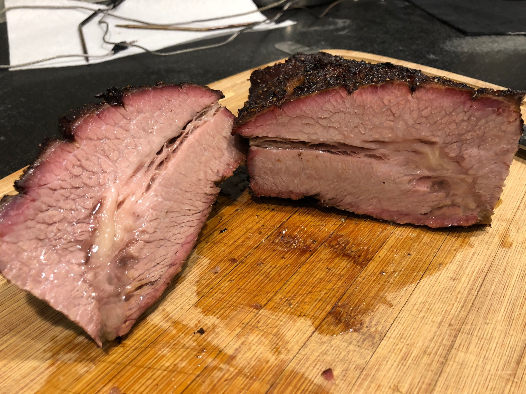 It looks like you got the point and not much of the flat.  I’d be thrilled to be able to buy brisket in a high point:flat ratio as I love the point.  Looks good.  Your slice looks a little thick for the “drape over the knife” shot but if it was tender and tasted good that’s all good.