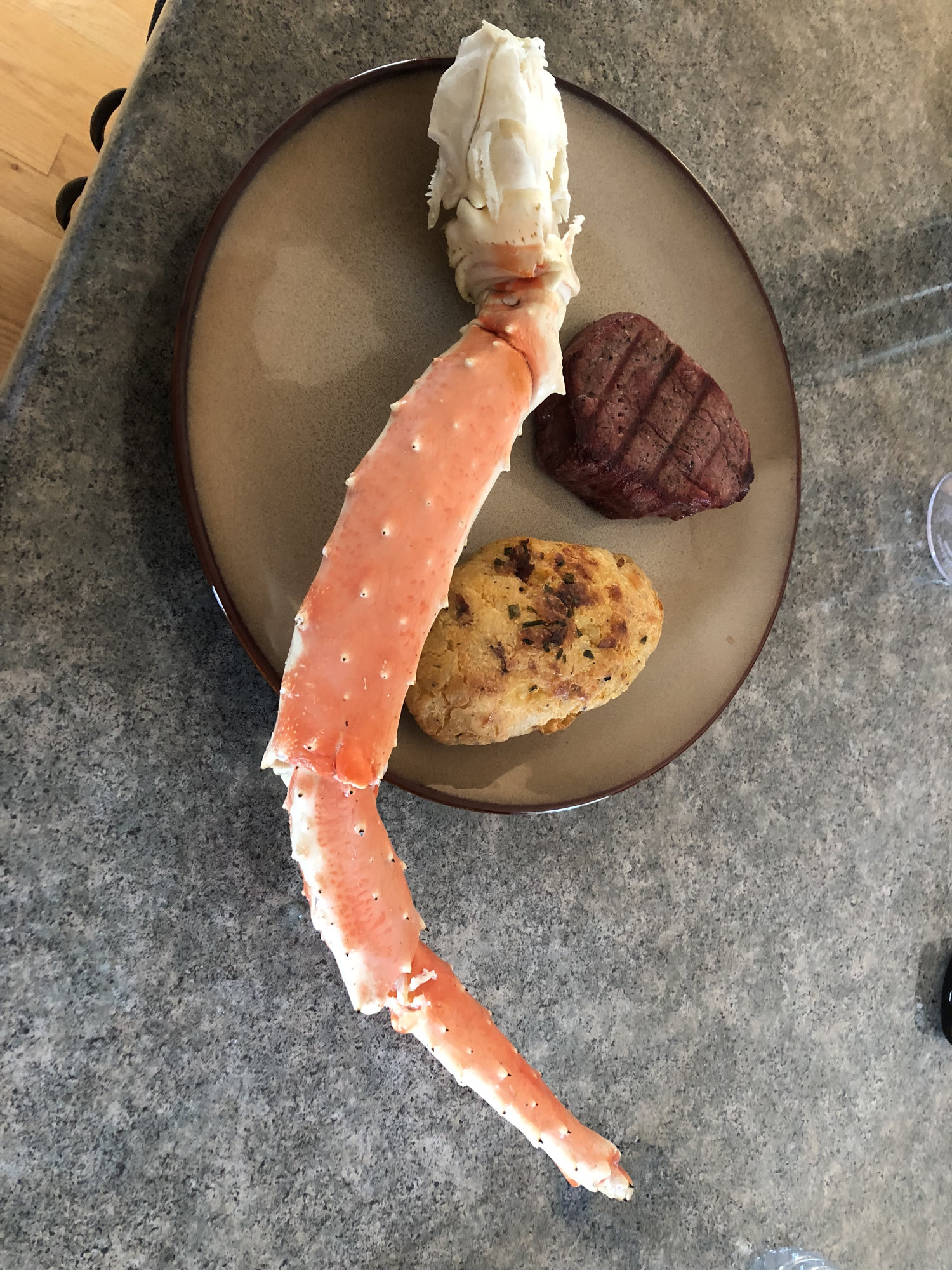 Either that's a really, really small filet mignon, or a SERIOUSLY huge crab leg. Either way, looks great!