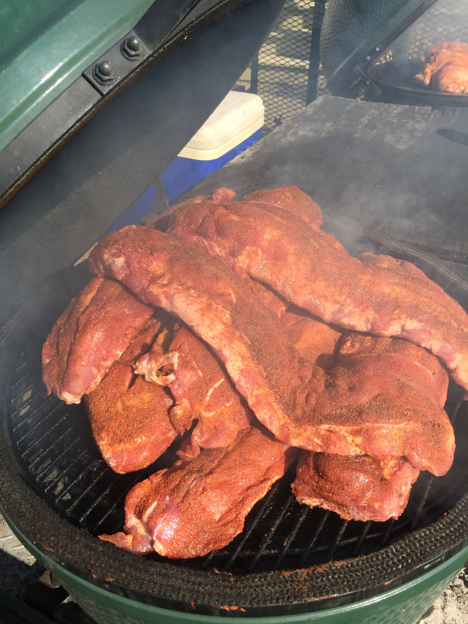 Wow! Is that ribs and butts on together? Looks like you got pizzed off and just threw everything on a big pile. Regardless, I know it will be good eats!Charlotte, NC