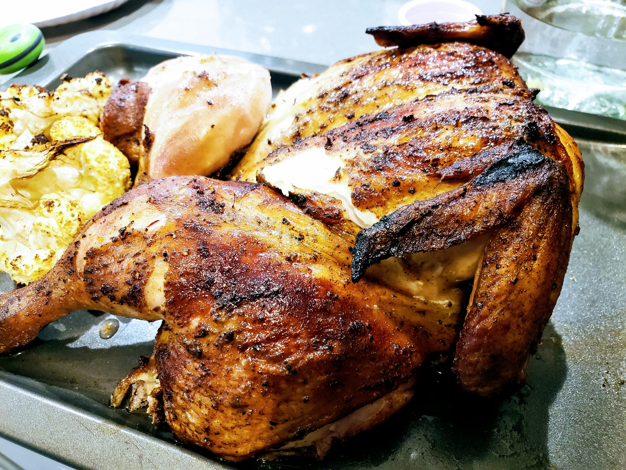 Nice color on the spatchcock bird. Looks tasty.