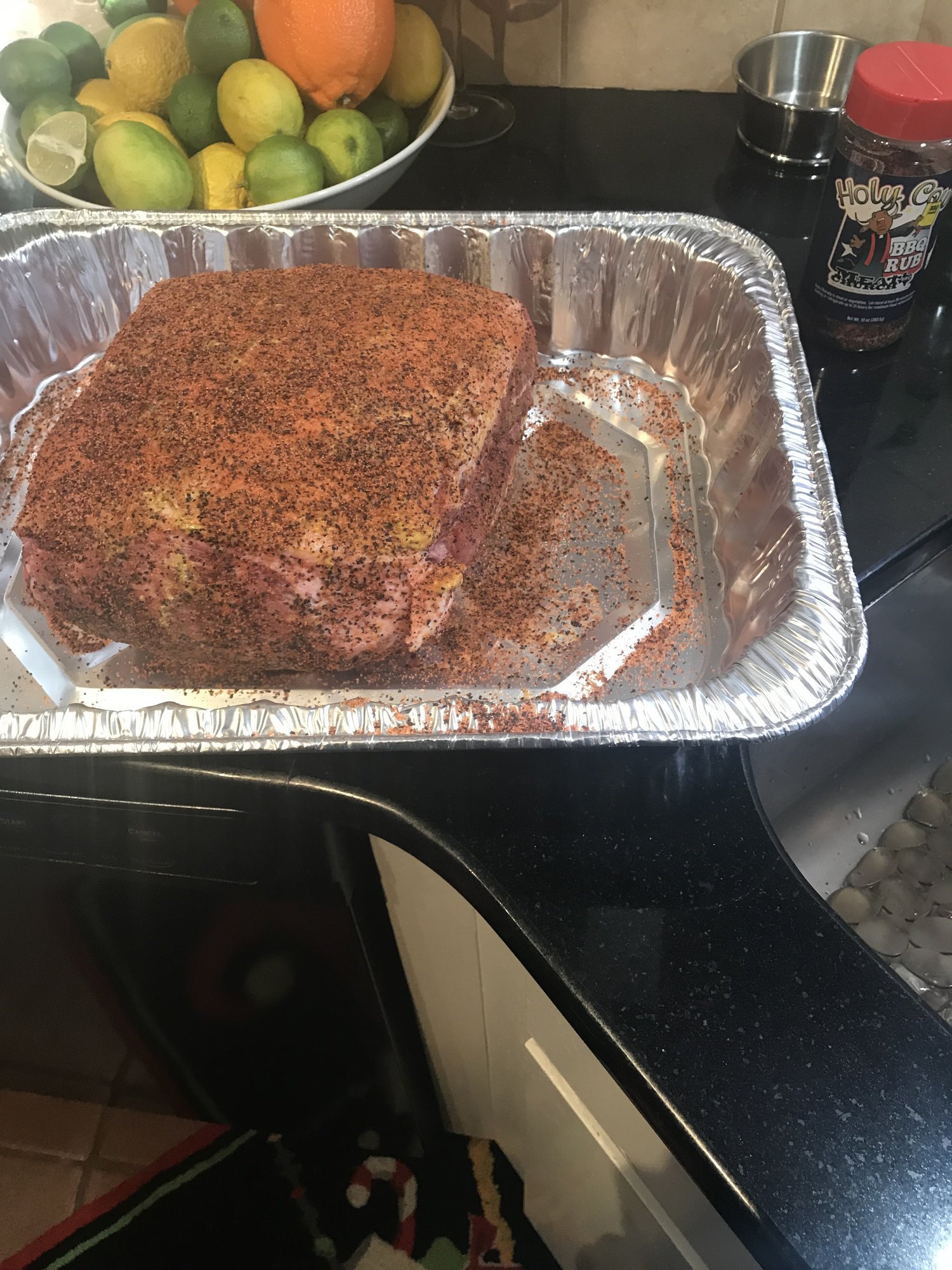 • I my self rub regular yellow mustard all over the pork then cover in rub. You can’t taste the mustard at all. I think a lot of people here do it as well.