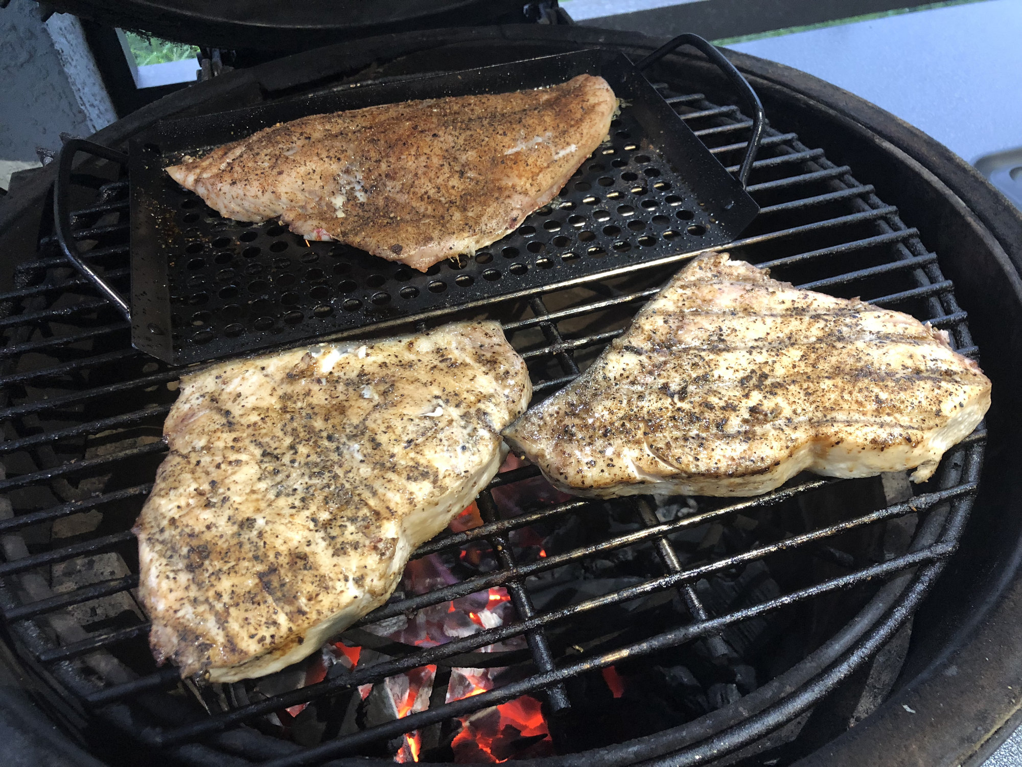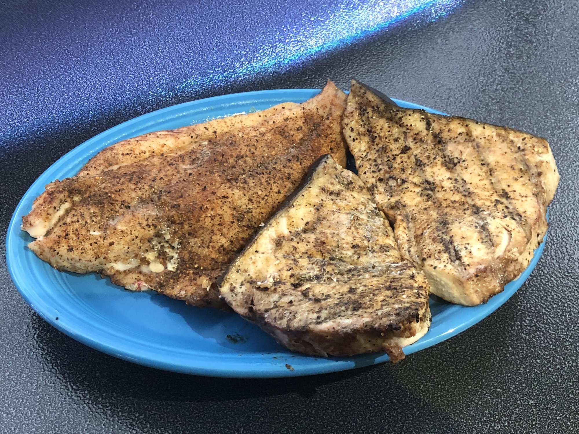 Lemon pepper swordfish steaks and jerk red snapper for dinner tonight.