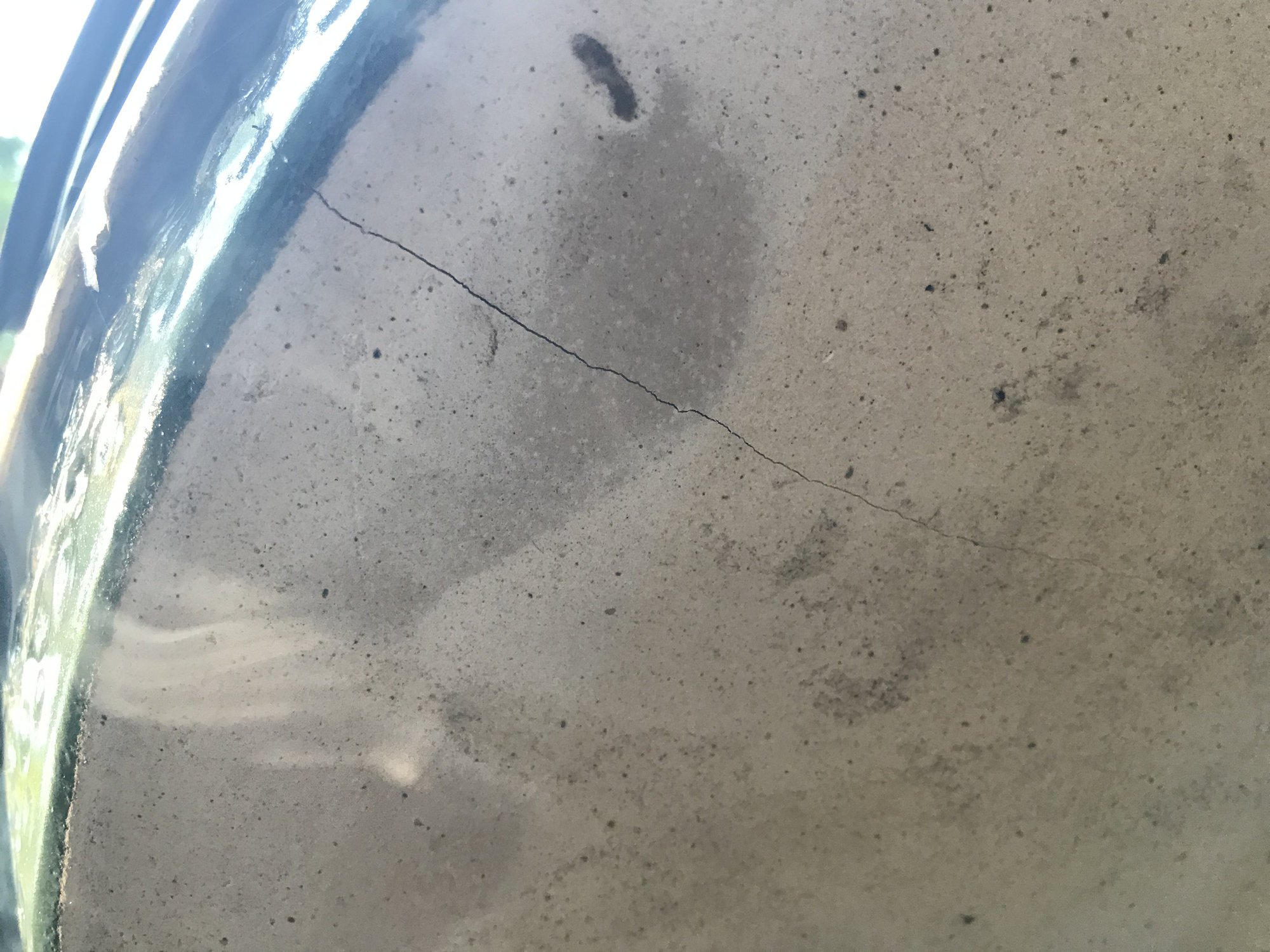 And how did I get the build up on the bottom of what appears to be grease? That little hairline crack can’t be responsible for that. Has anyone seen that before?I'm in Fredericksburg, VA, and I have an XL and a medium.
