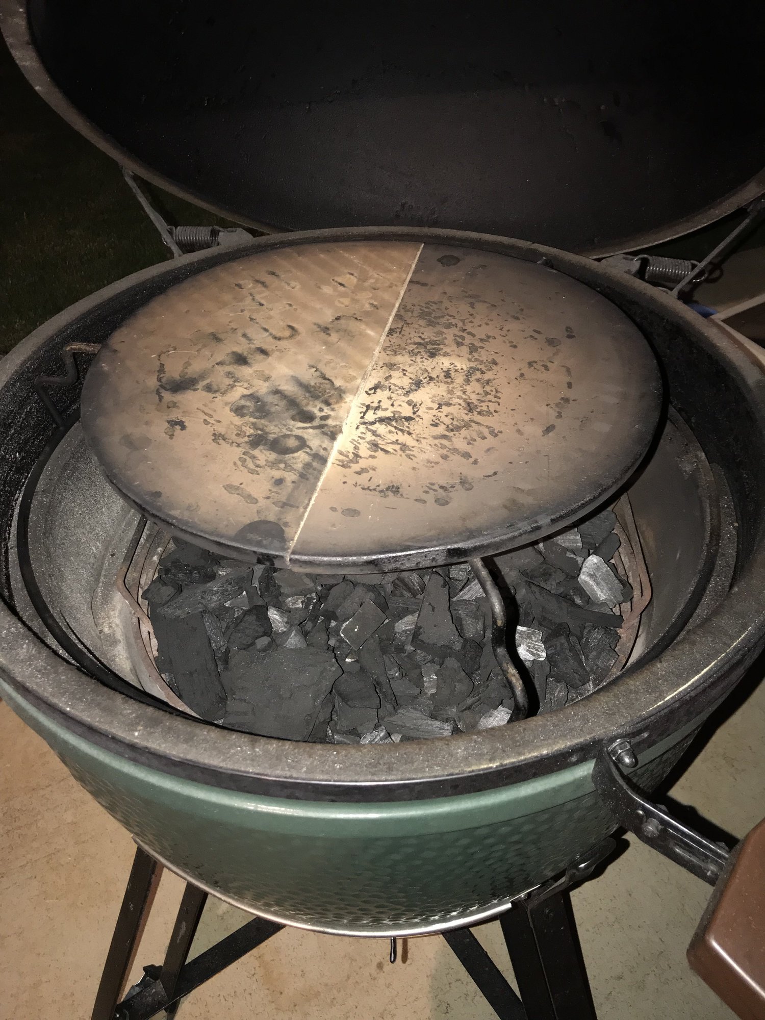 99% of the time I use about half of my XL. I bought 2 bricks for Lowe’s for $2 or something. I like the cold side to pull off meat when it’s done, or to put over there for indirect in the event it’s done on the outside but needs more inside (ie a thick chicken breast).