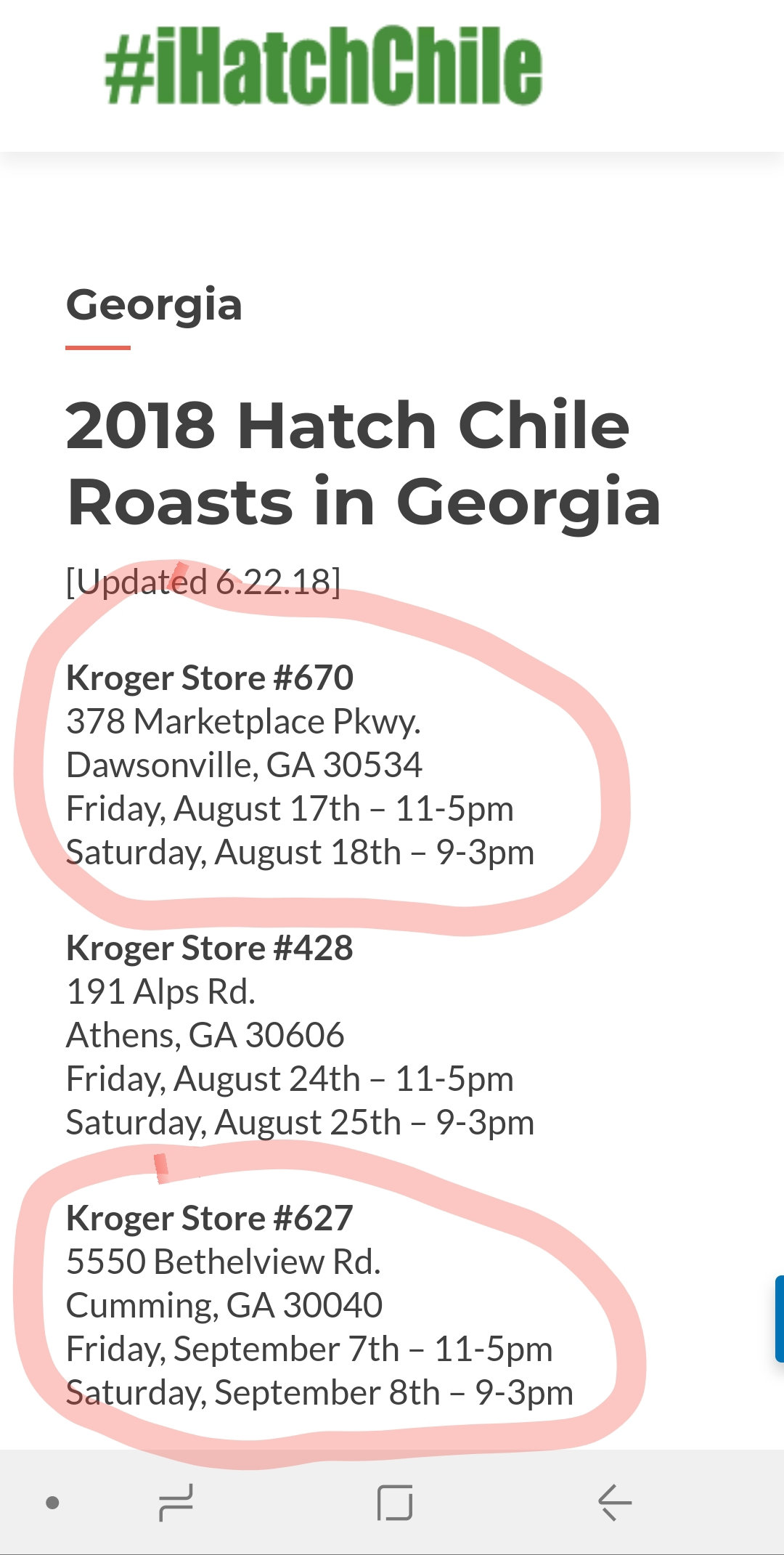 Just picked up around 5#s of fresh roasted hatch chile from the Dawsonville Kroger. Gonna add 25 more lbs in early September when they come back. Do yourself a favor and stock up!