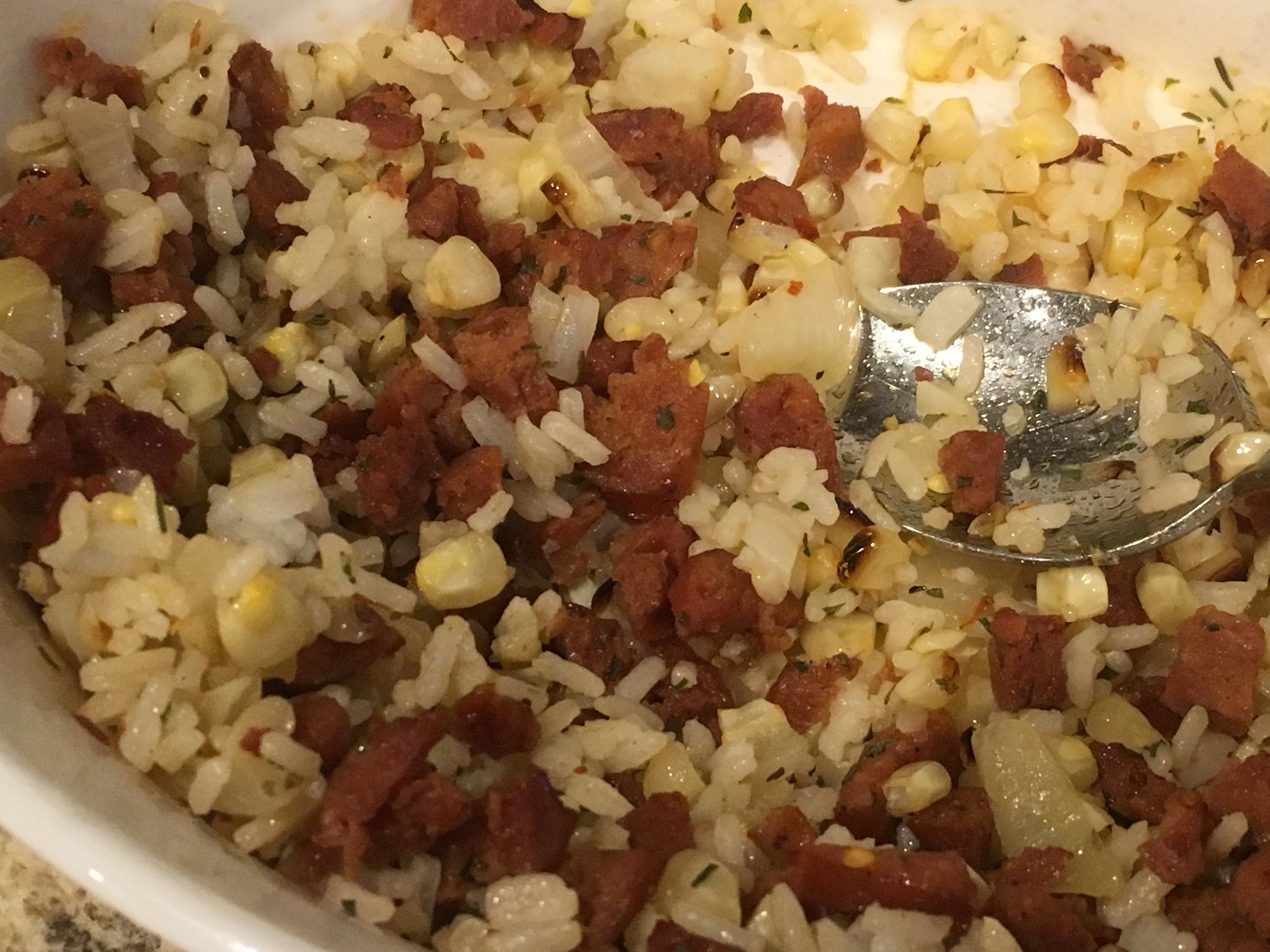 Took some rice, sweet Italian, hot Italian and chorizo sausage which was cut up and browned on the stove, added some garlic, onions, celantro and cheese and stuffed the peppers. Roasted at 400-425 till they looked like they do.  I was pleased with the three I ate.