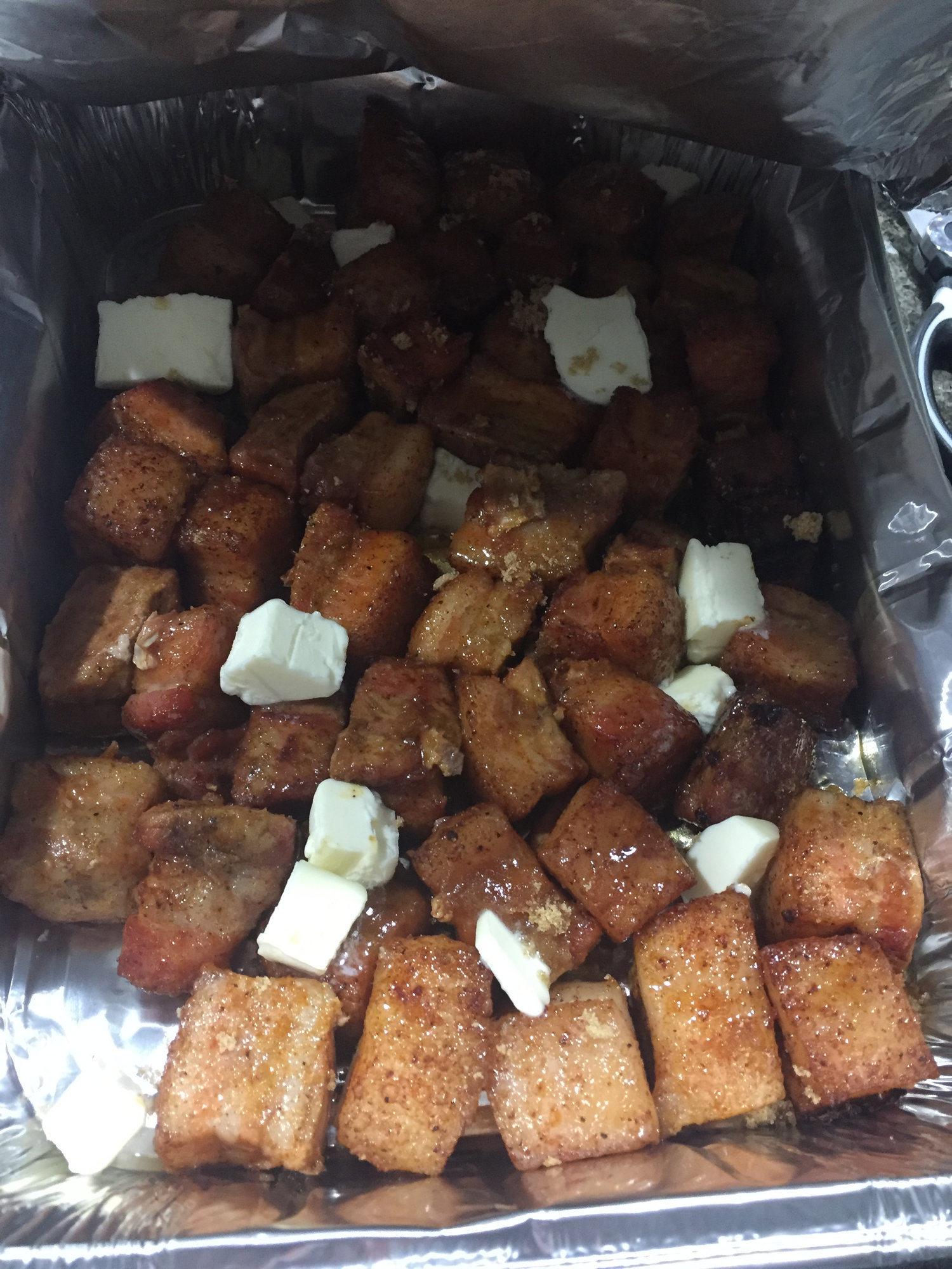 If you are opposed to the fat content, try doing them with country ribs or a small butt and cube them up in lieu of the belly. They won’t be quite as tender due to the leaner cut , but that’s the trade off. They will still be good.510BG said:Looks great much better then my first attempt. I'm starting to think I didn't trim off enough fat.