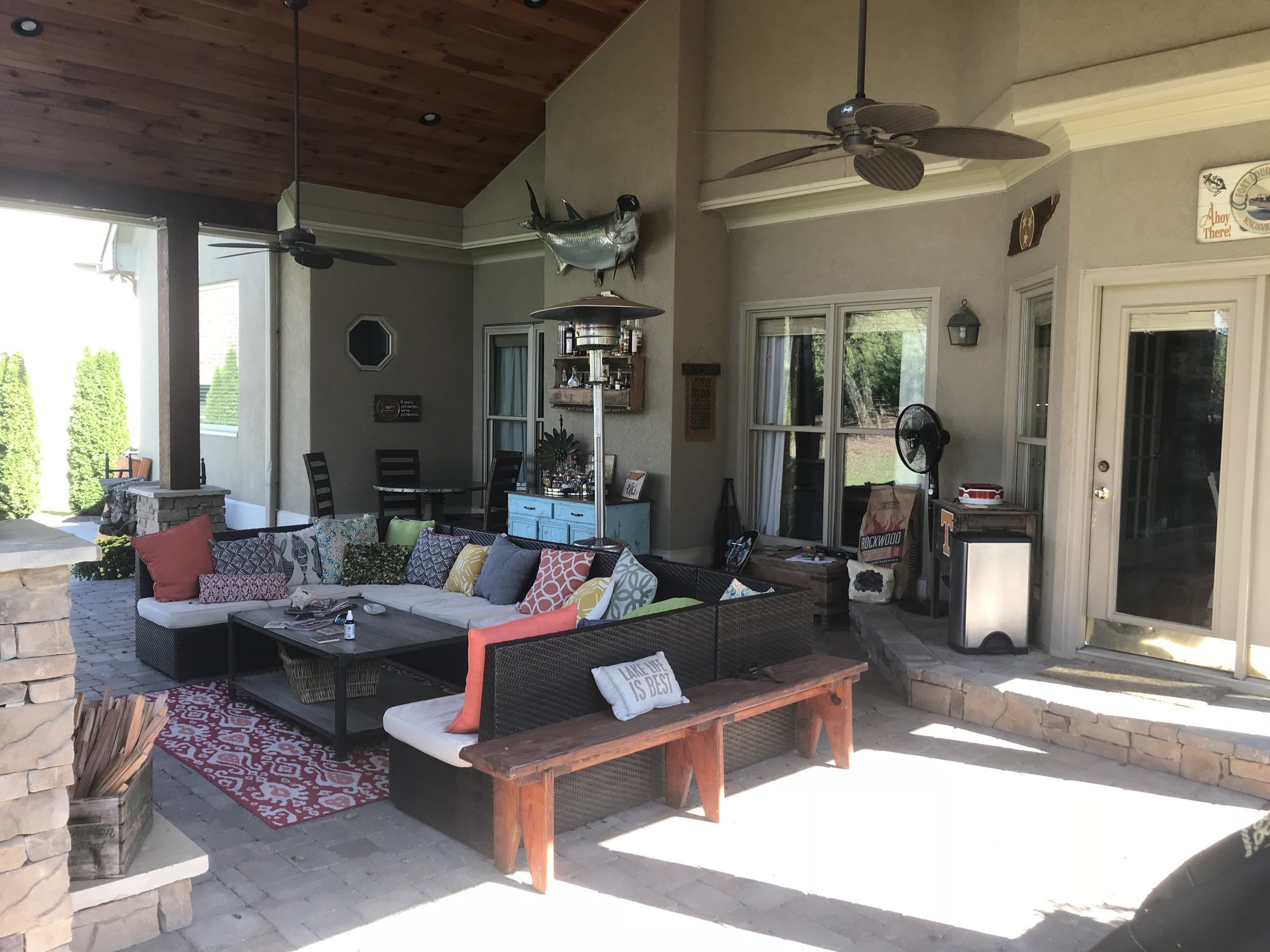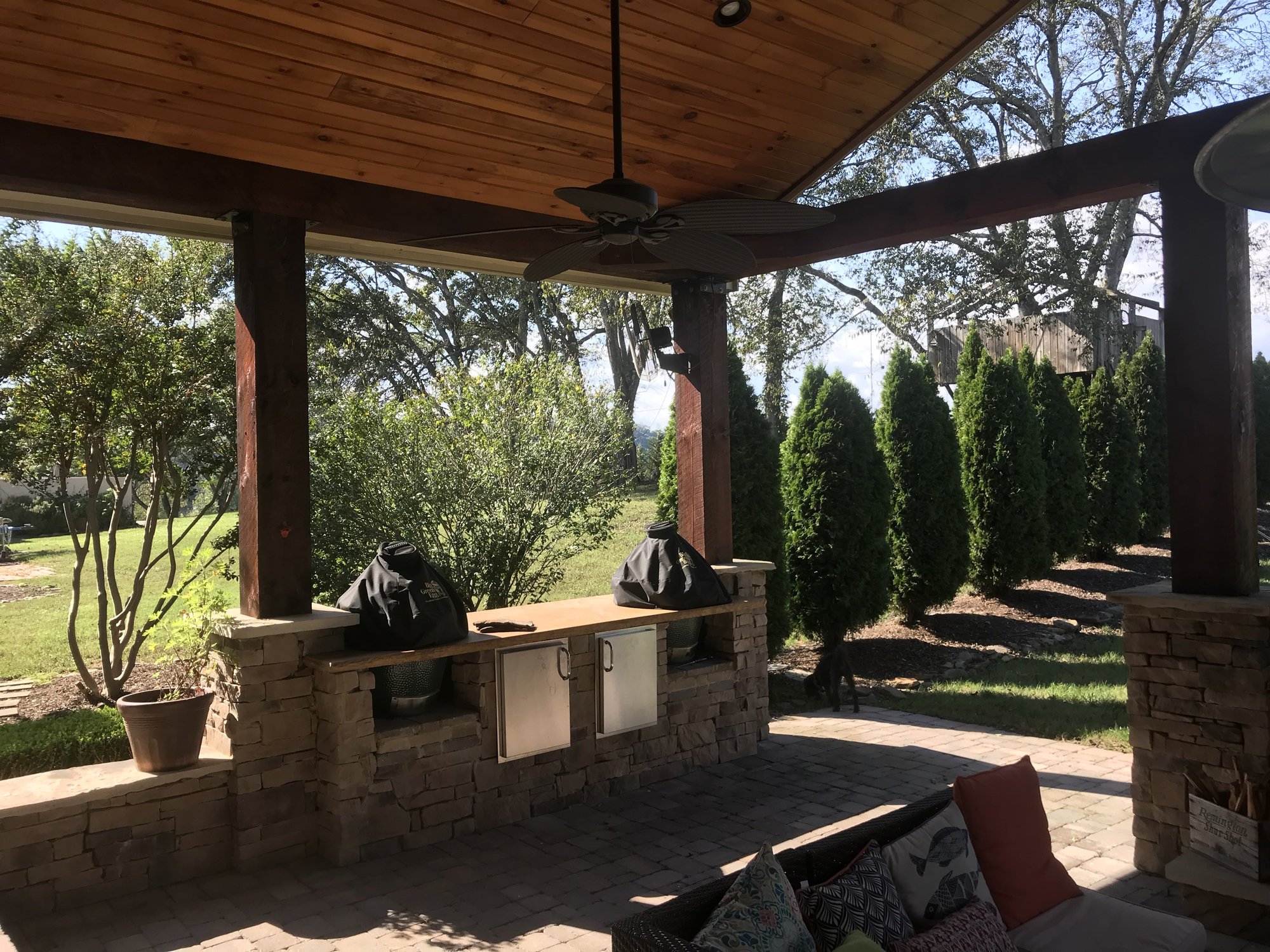 New bedroom almost complete. New outdoor kitchen will go in the area pictured along both walls. One of my crusher cone fire pits. Having a grill grate made for it as well.Xl bge ,LG bge, two 4' crusher cone fire pits. Weber Genisis gasser and