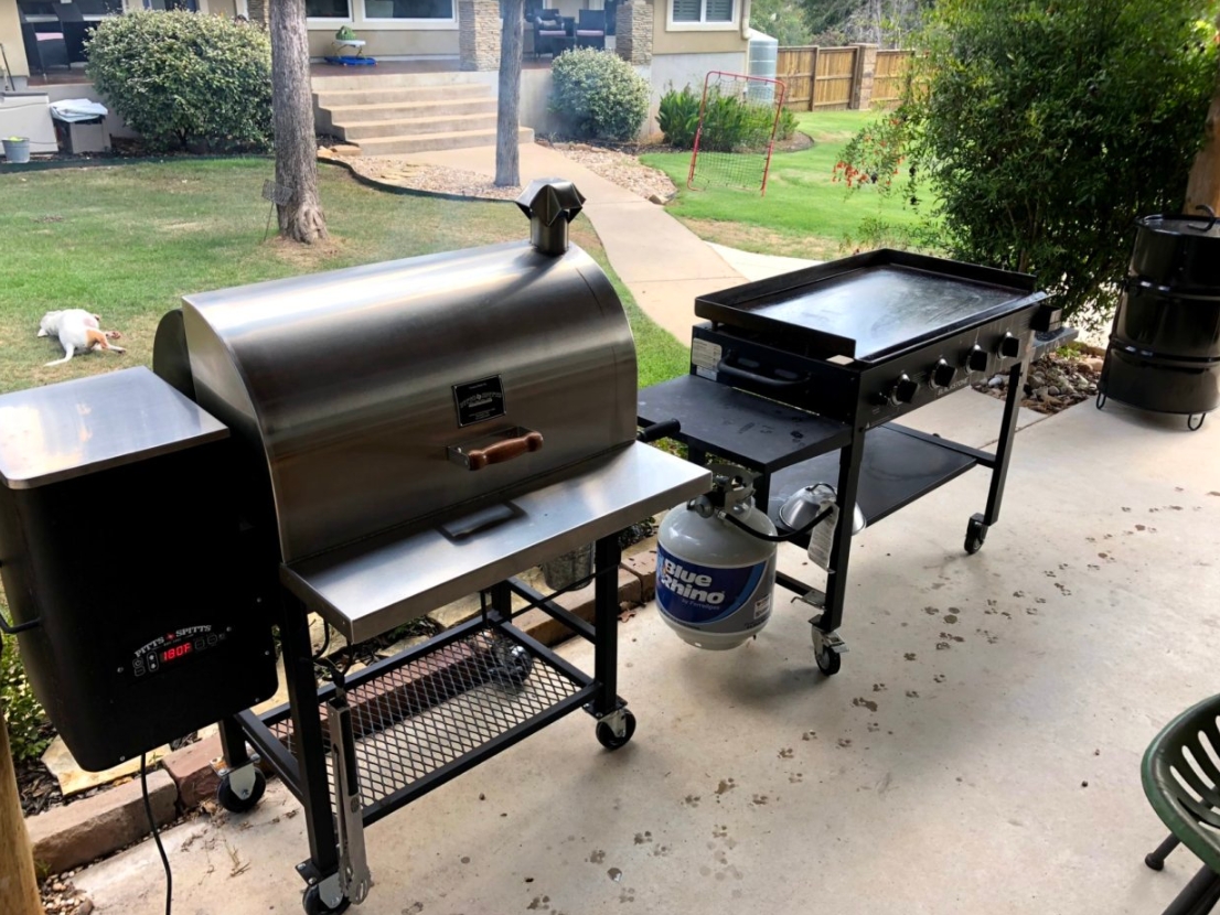 Also recently gained: (1) Gas Thing (came with the house), (1) 36" Blackstone Griddle & (1) Pitts & Spitts Pellet Smoker -