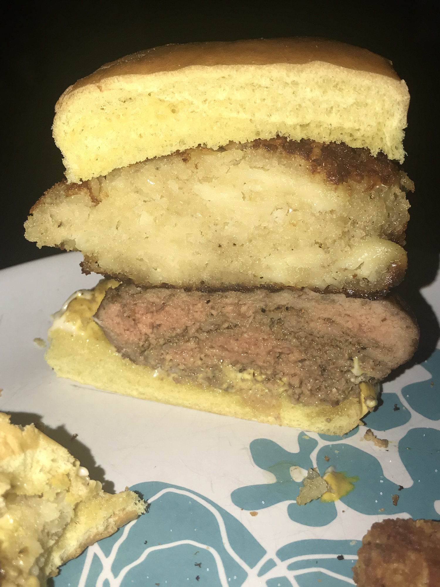 made 8oz burger tonight seasoned with dizzy pig dizzy dust and ghost pepper seasoning.   Added 2 tsp of each to the burger mix then a little extra ghost pepper on top.   What’s the best topping for a fat burger!!!! Fried Mach and cheese.   Here are a few pics of tonight dinner