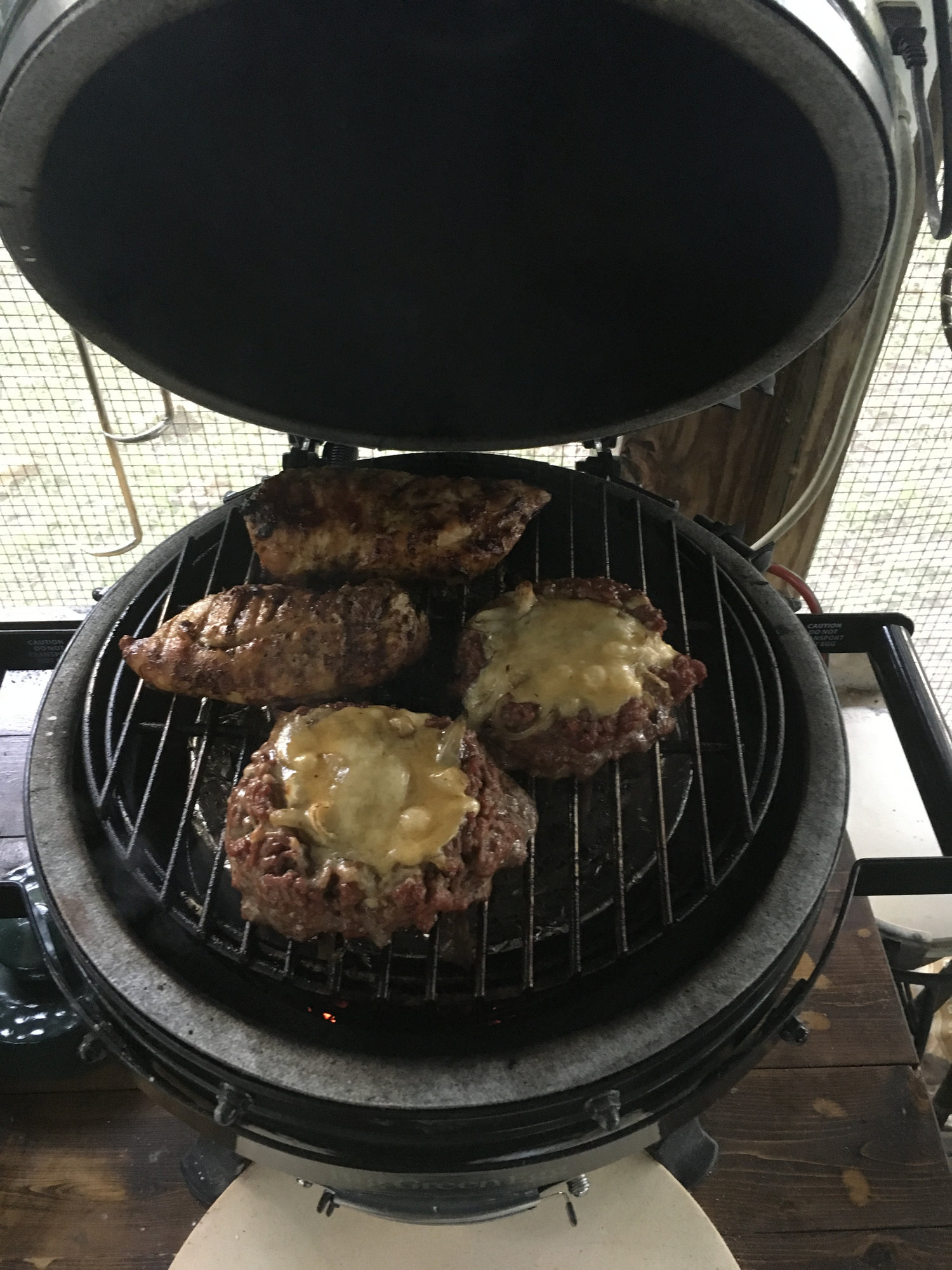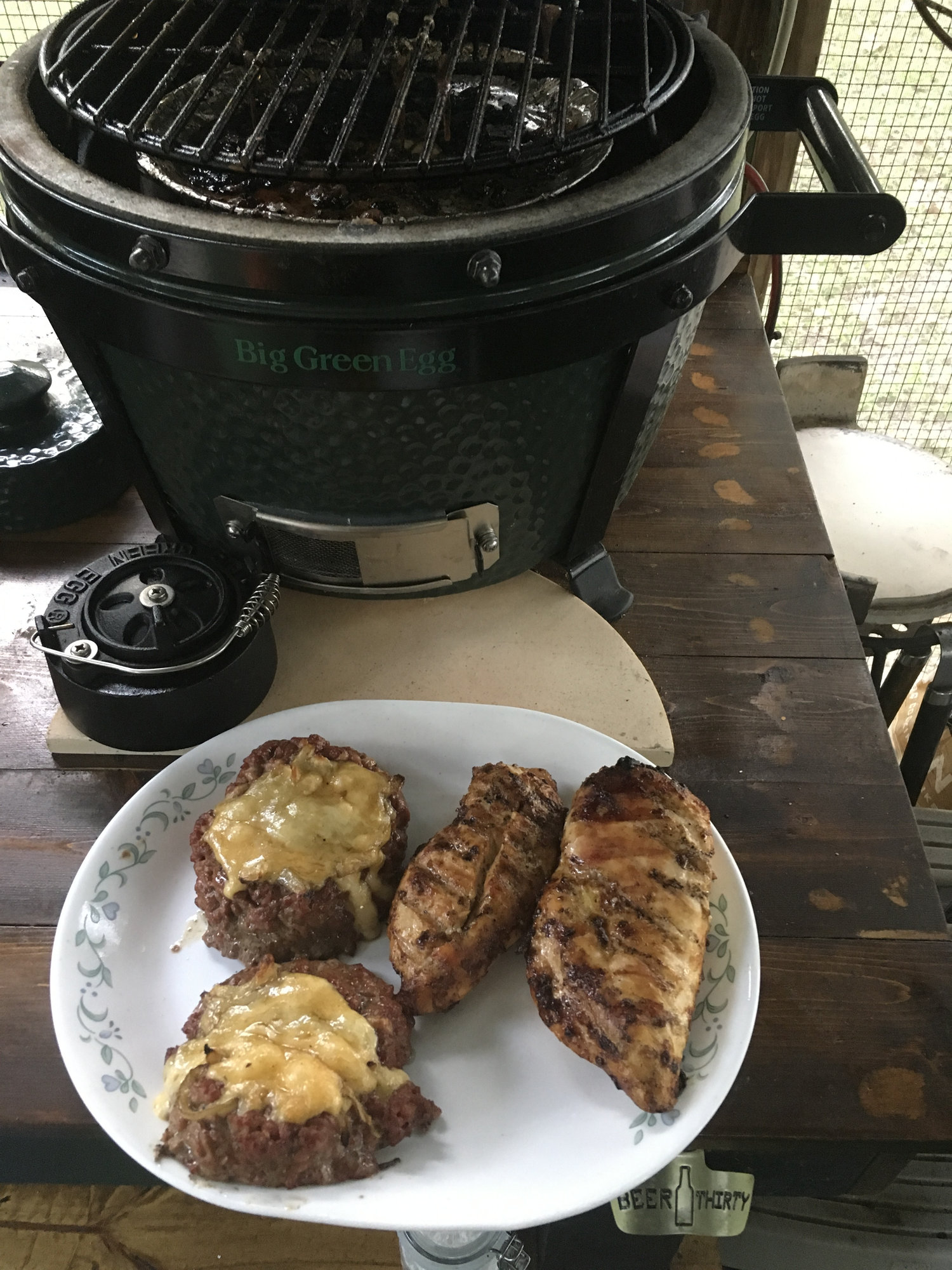 Made chicken brest and 1/2 lb beer bottle burgers.