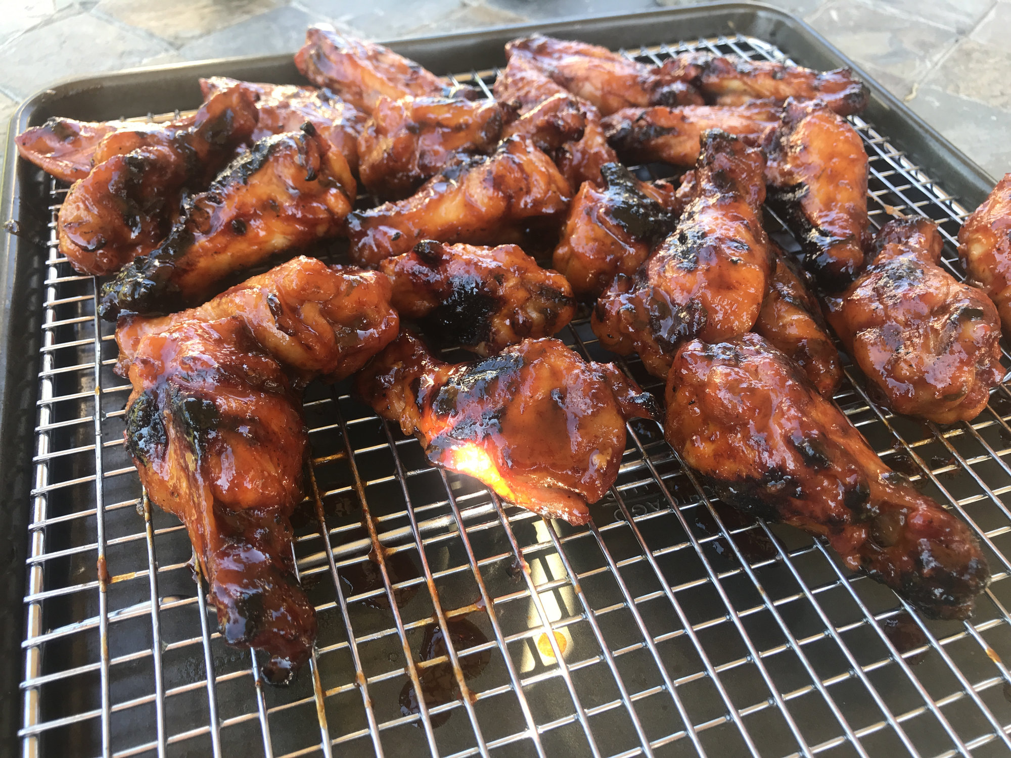 melt butter on low on the stove. add other ingredients and stir together. cook wings indirect until 155-160, remove, lightly toss in sauce, finish raised direct until wings are done. once off the grill toss in sauce one more time