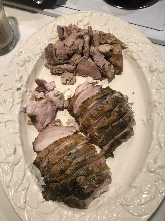 I added some dark meat from the Thursday cook to add some variation and since there were 8 of them to add more meat.