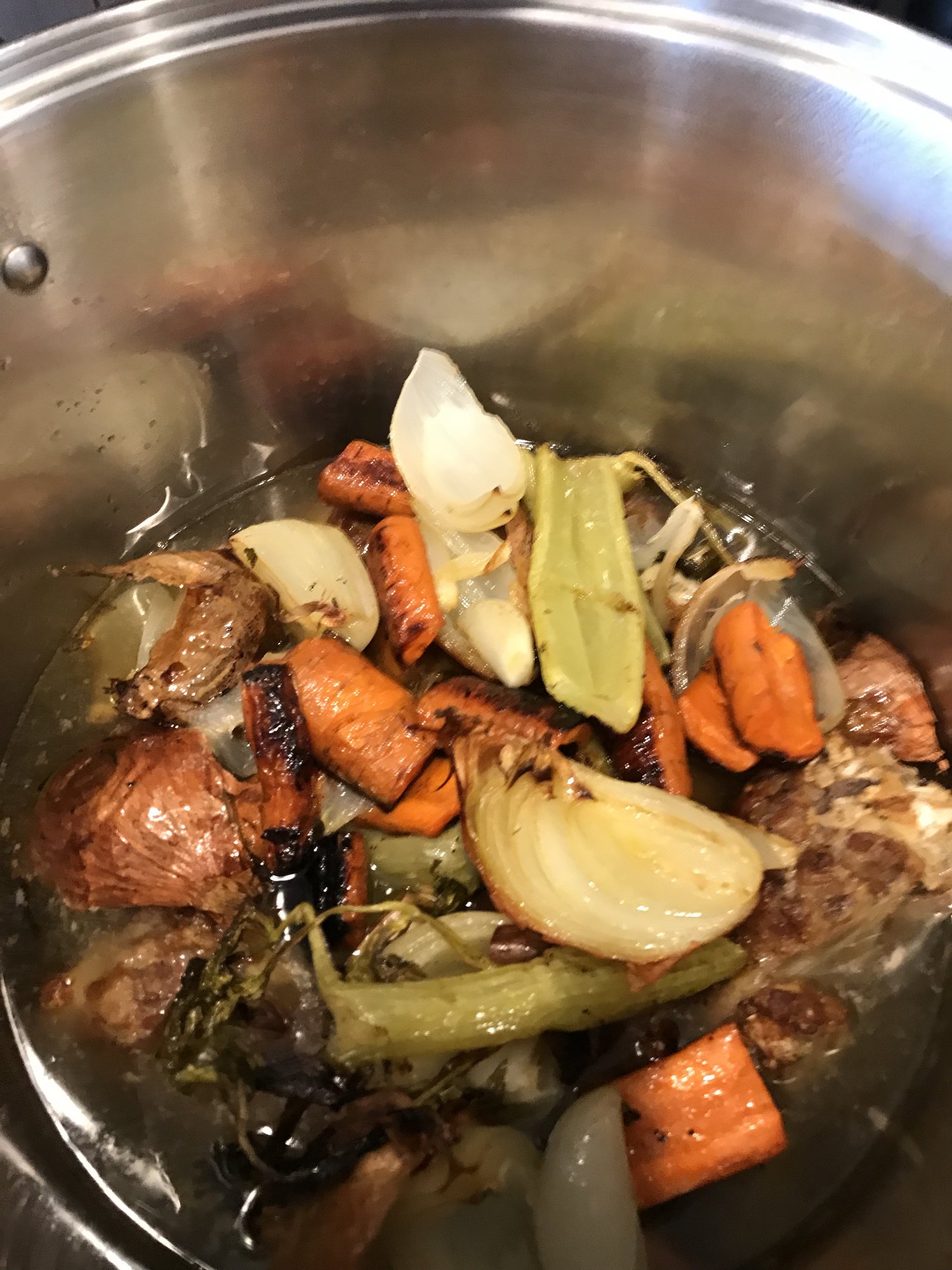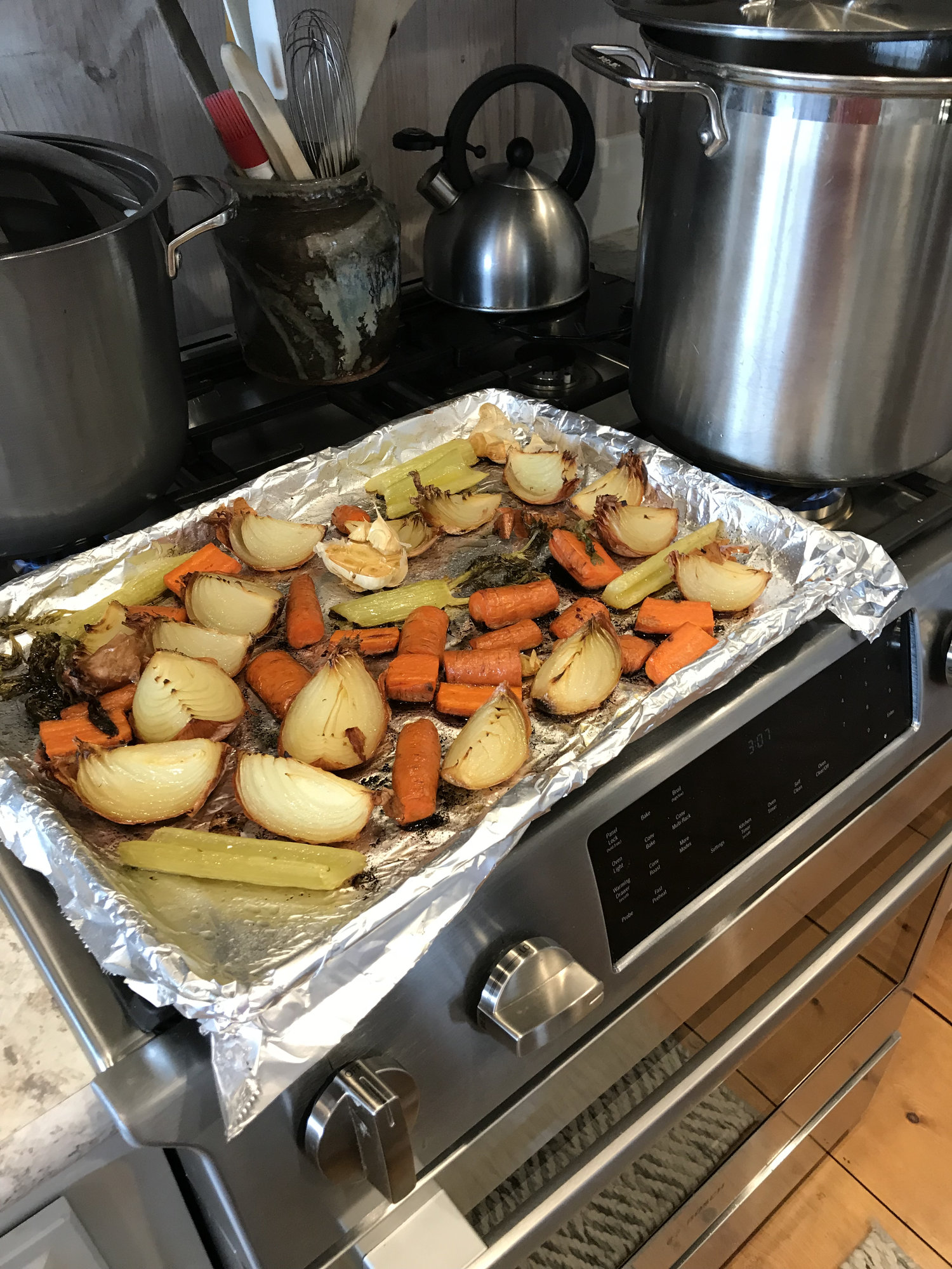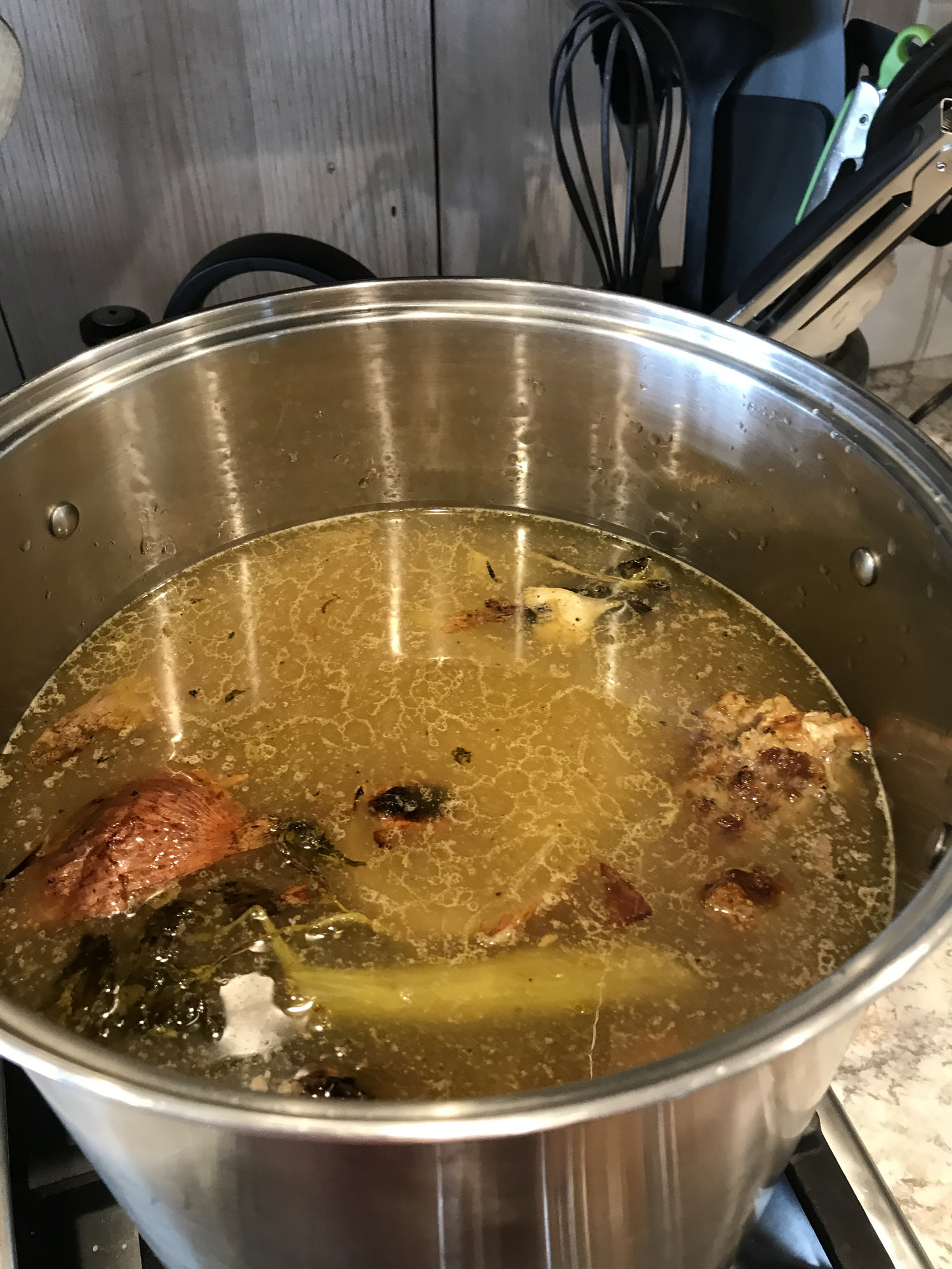 Our stock pot was just about overflowing and we’ve been waiting for it to simmer down a bit before stuffing it with more stuff, and I walked into the kitchen seeing @20stonespice stirring the pot with a turkey foot. We’ll keep it going overnight