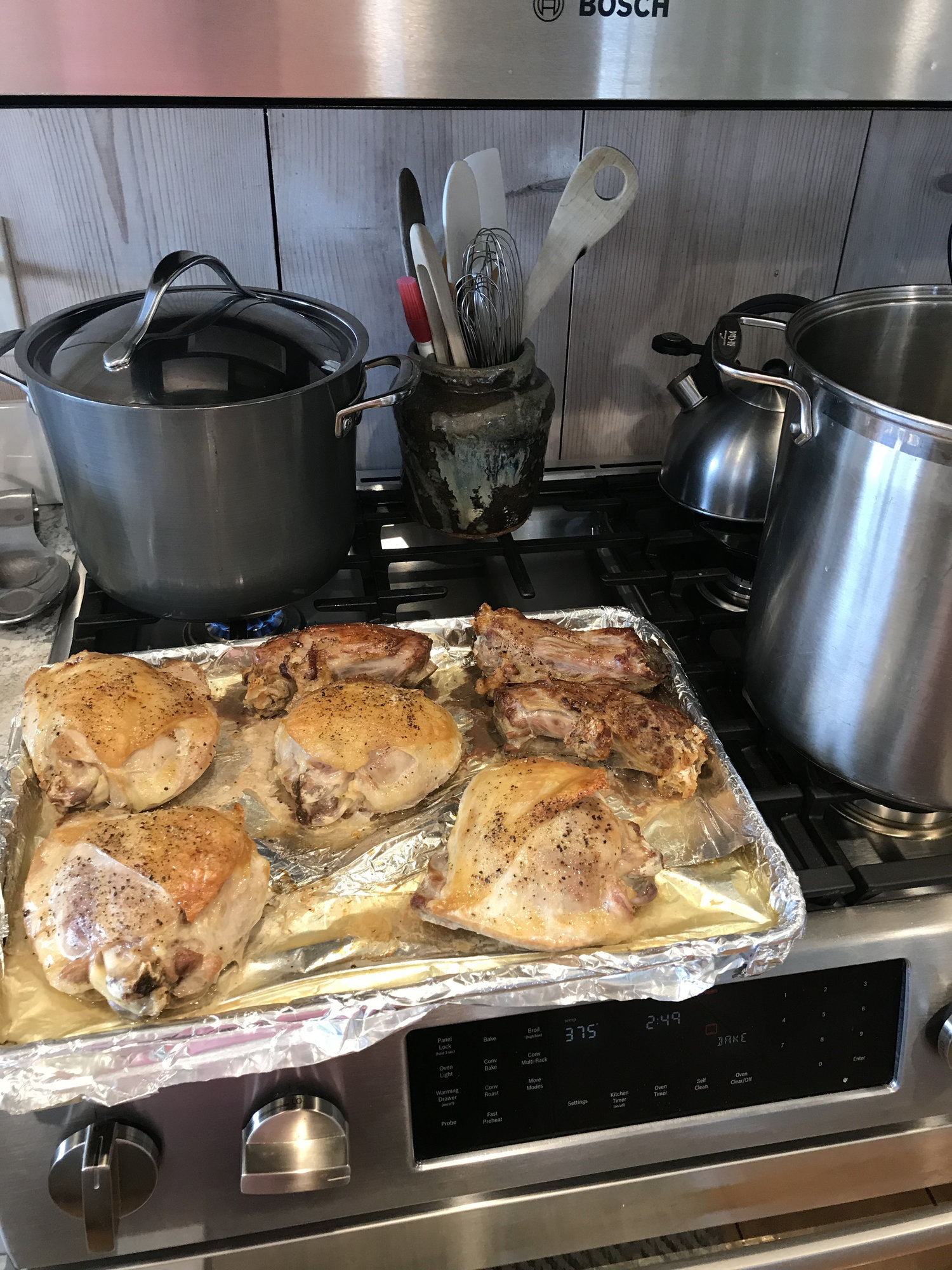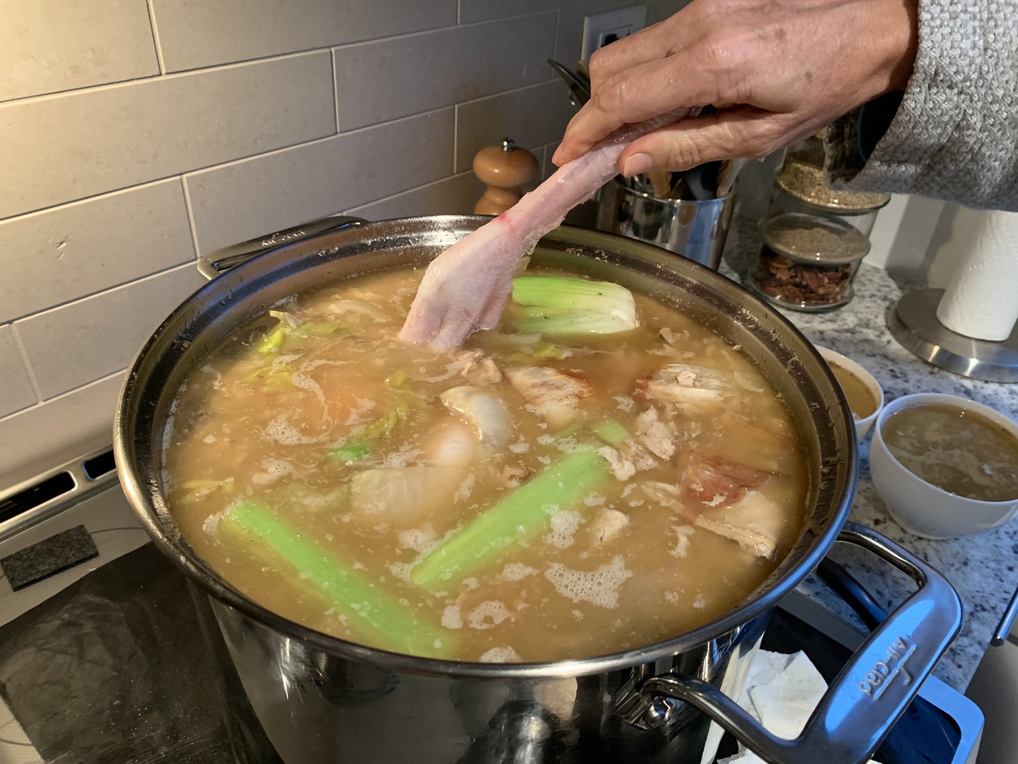 That looks great. One new thing we are adding to the stock pot are chicken feet, which have a bunch of collagen to add some jiggle. For our turkey stock, we have a big bag of turkey feet, which will go in as soon as there’s room.(now only 16 stone)