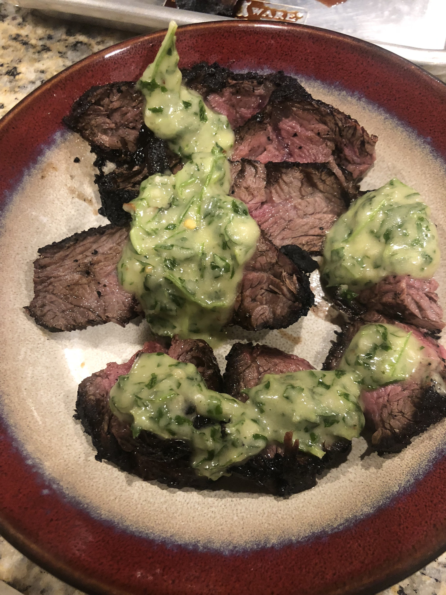 Chimichurri Sauce was a little thick due to parsley not being finely chopped. Flavor was good though. Decent for my first attempt at thr combination.