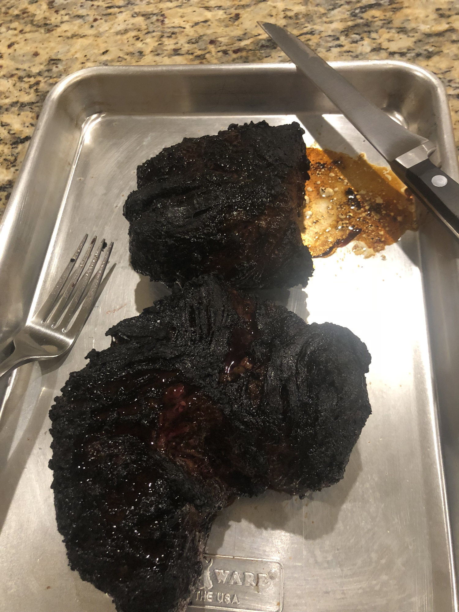 Taste was good, not great due to char, but the SOB is a pain to cut. (Overcooking it probably didn’t help.)