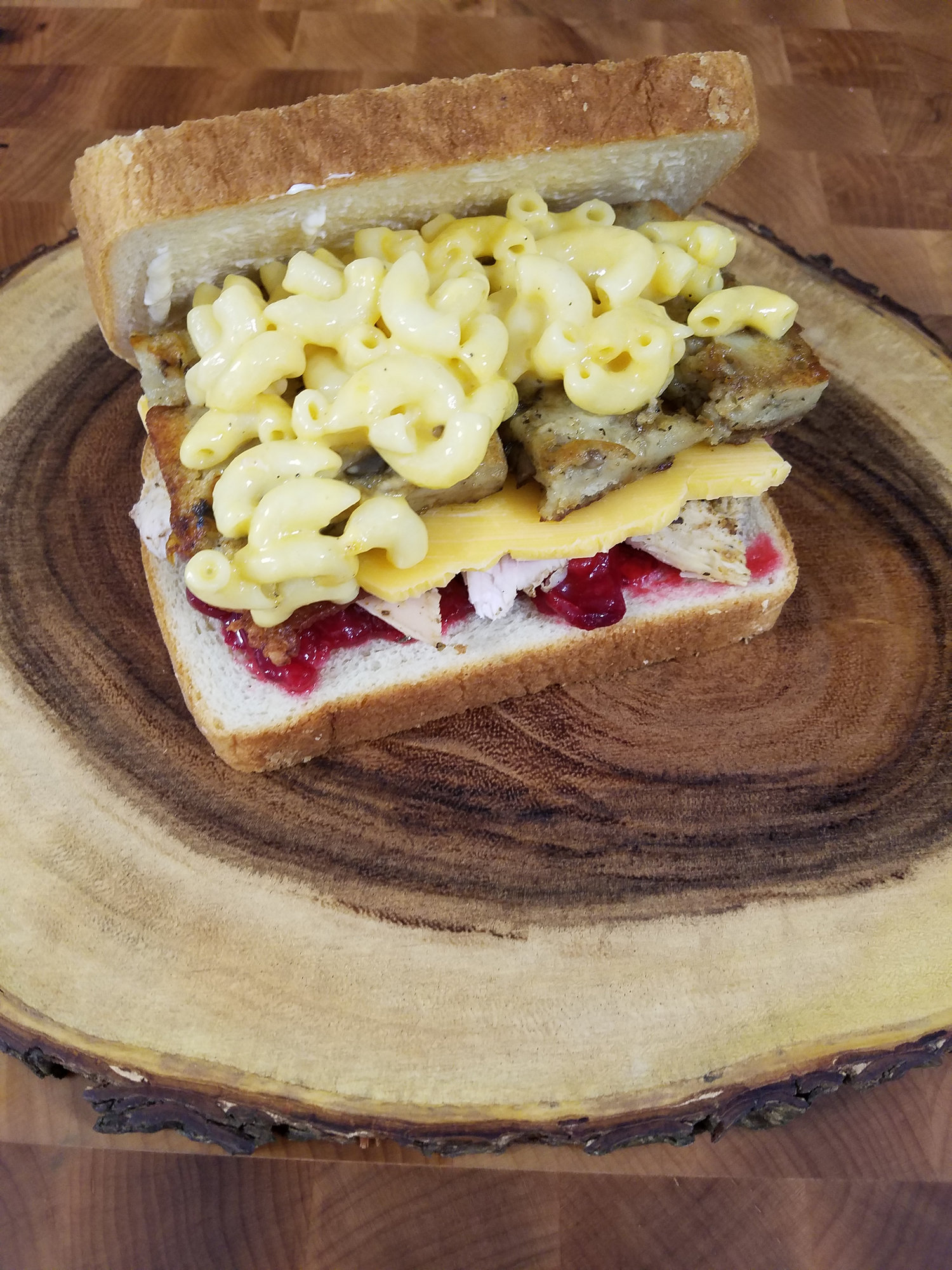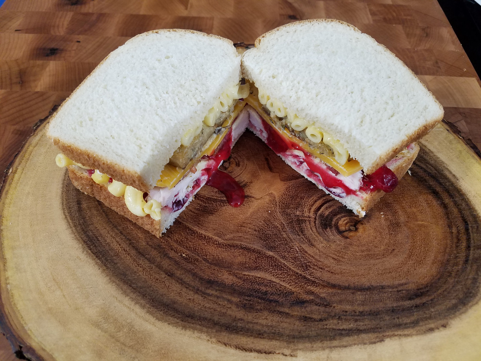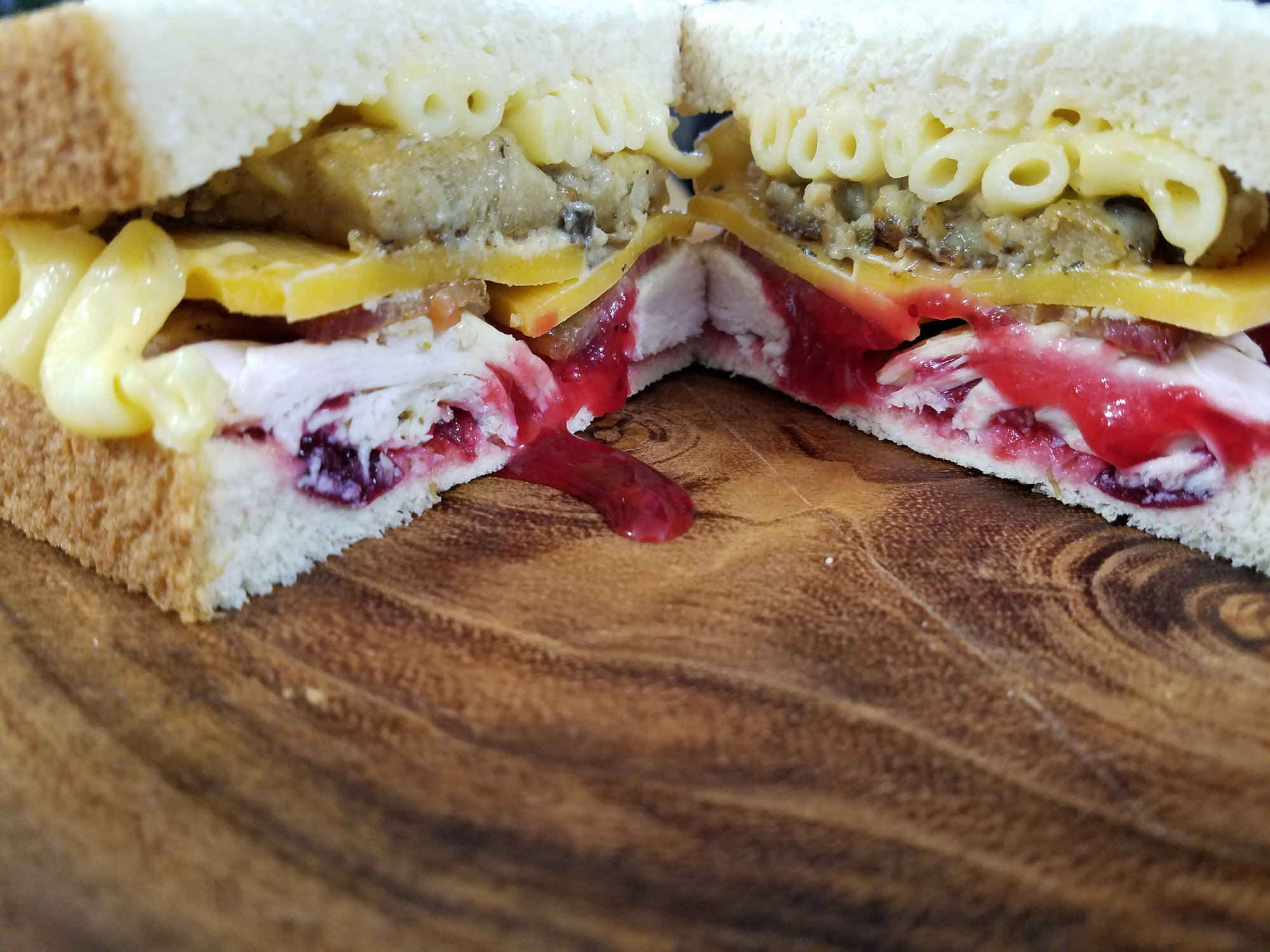 Nothing better than a turkey sammich with all the fixin's. Split and seared off the dressing for a crispy crunch and added bacon