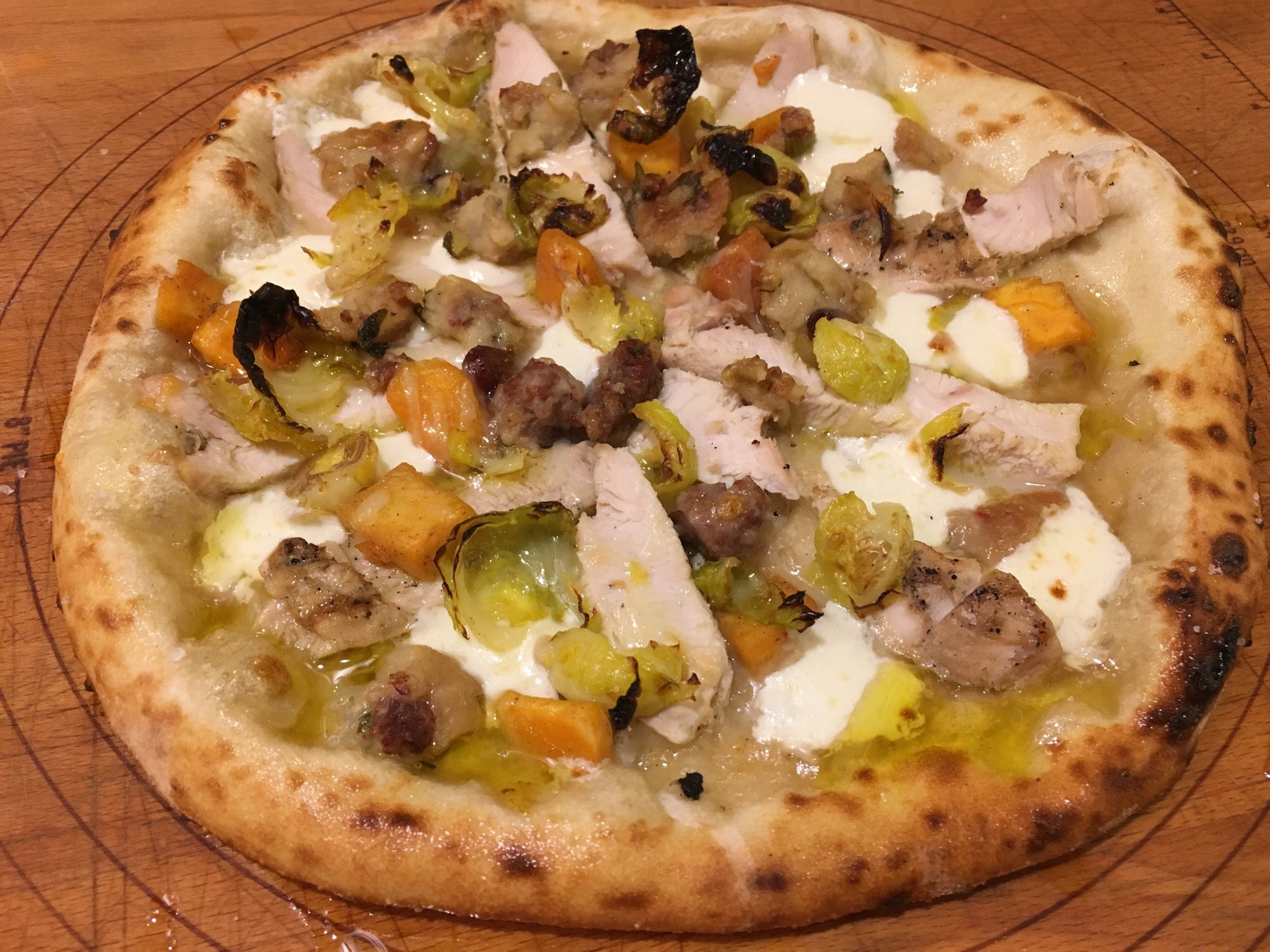 My better half and I were just discussing my plans for this only I was going to do a little cranberry sauce drizzle to finish.JohnInCarolina said:My humble entry: Thanksgiving leftover pizza with gravy base, turkey, sausage stuffing, sprouts and sweet potatoes: