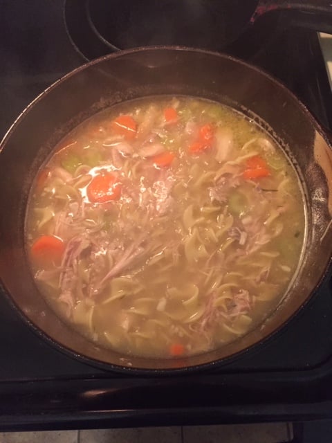 Put the leftover turkey in a stock pot along with a bunch of root veggies (turnip, carrots, celery , onion, garlic) heck you know the drill, y'all taught me. Then made turkey noodle soup. It was good and I had enough turkey stock to freeze for later.