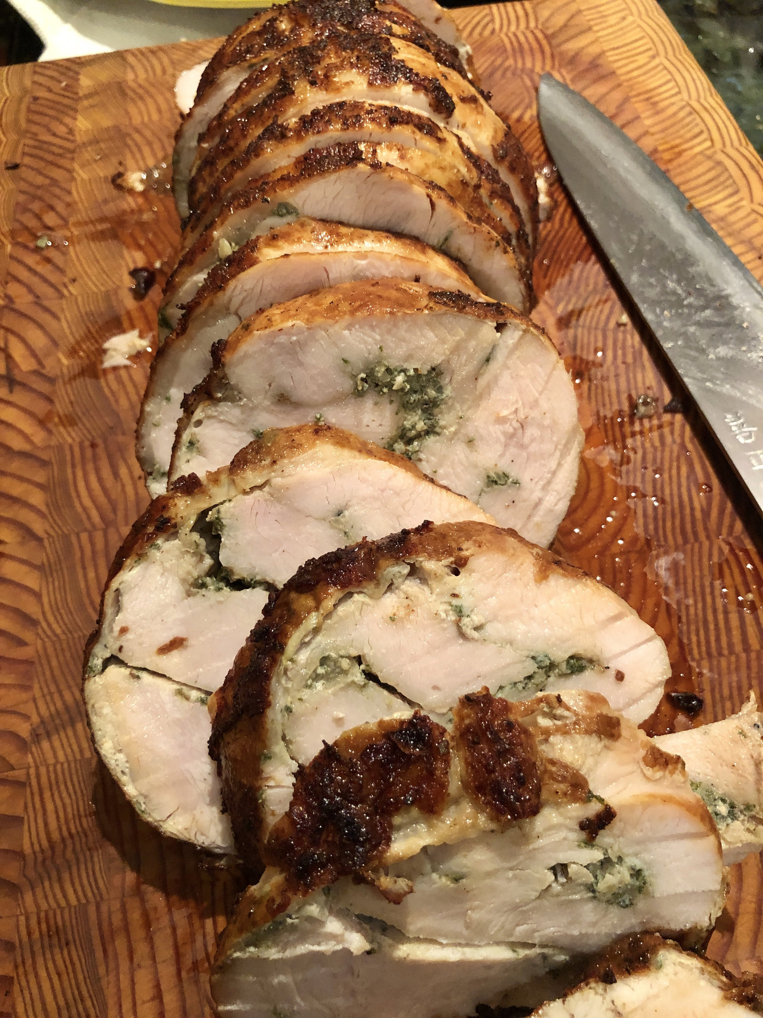 Yes everyone at our house last night loved it.  That herb paste really goes well with the turkey.   I finished it on the CI but I think it would also be interesting to flash cool it and then finish on the BGE to see if you could add a bit of smoke.