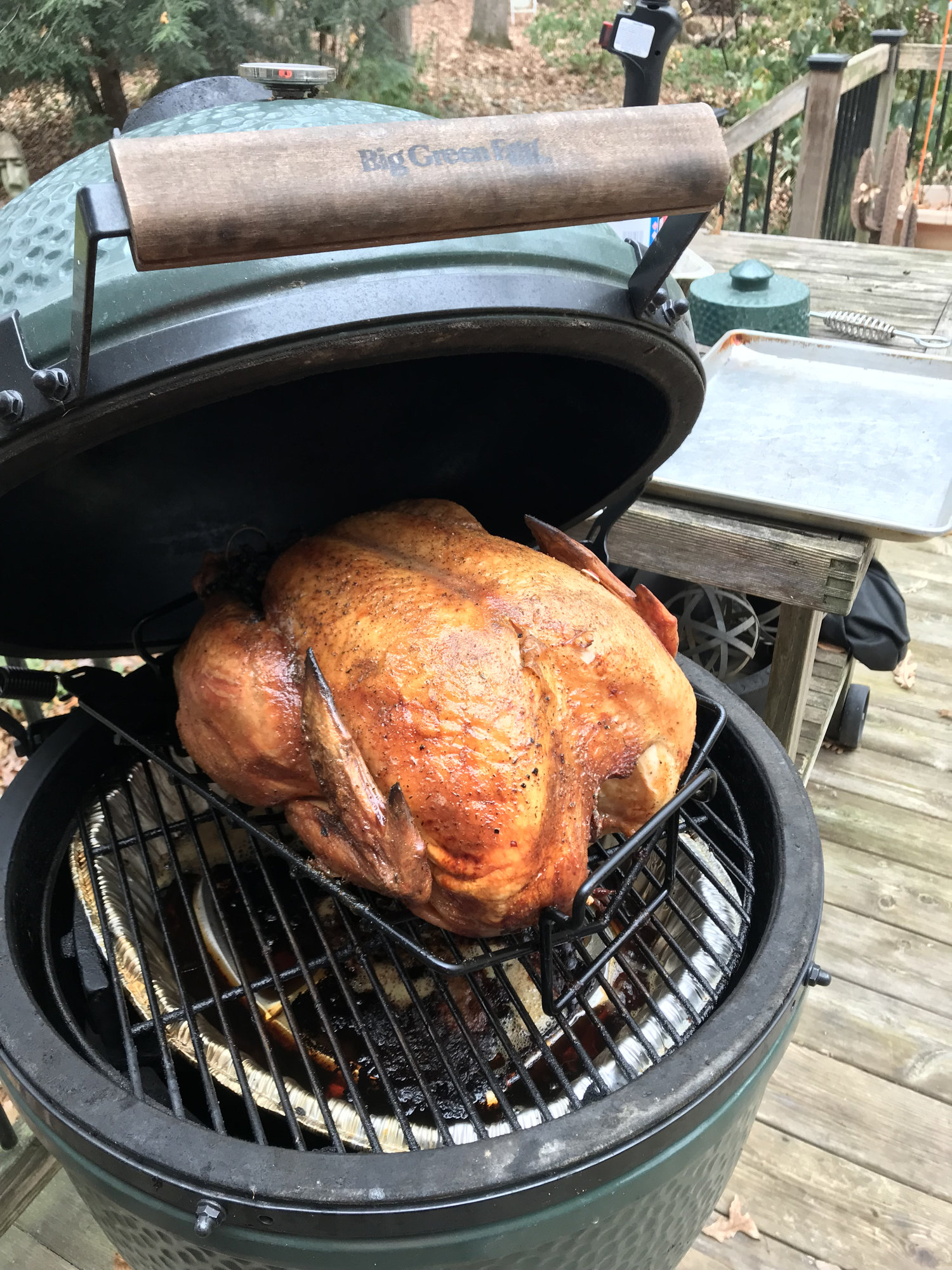 It's too late for this year, but I was thinking about how I did my turkey yesterday. I got a Joetisserie for my LBGE and used it for chicken and it came out great. I decided to do the turkey with it this year. With both the chicken and turkey, I used direct heat and tried to keep the temperature between 325 and 350. It turned out great but I was thinking that maybe I should have cooked the turkey with indirect heat. What do you think?