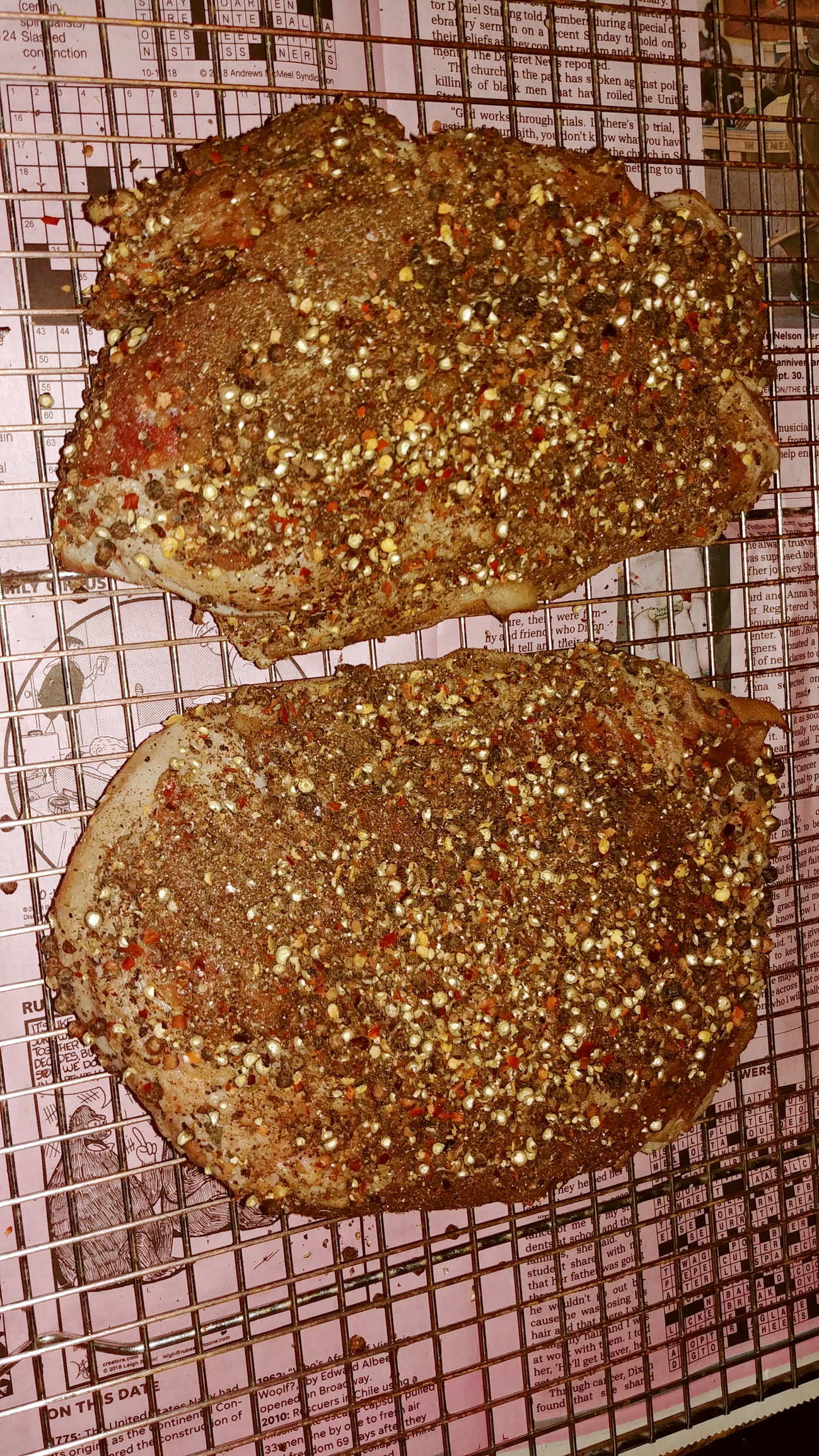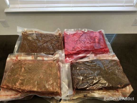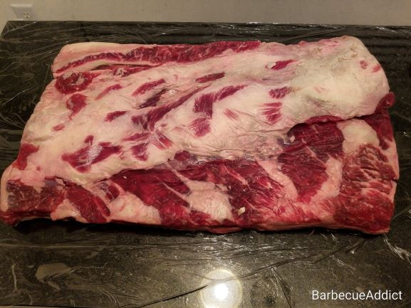 Cured two 10 lb slabs of beef navel as a part of my bacon makin' efforts: