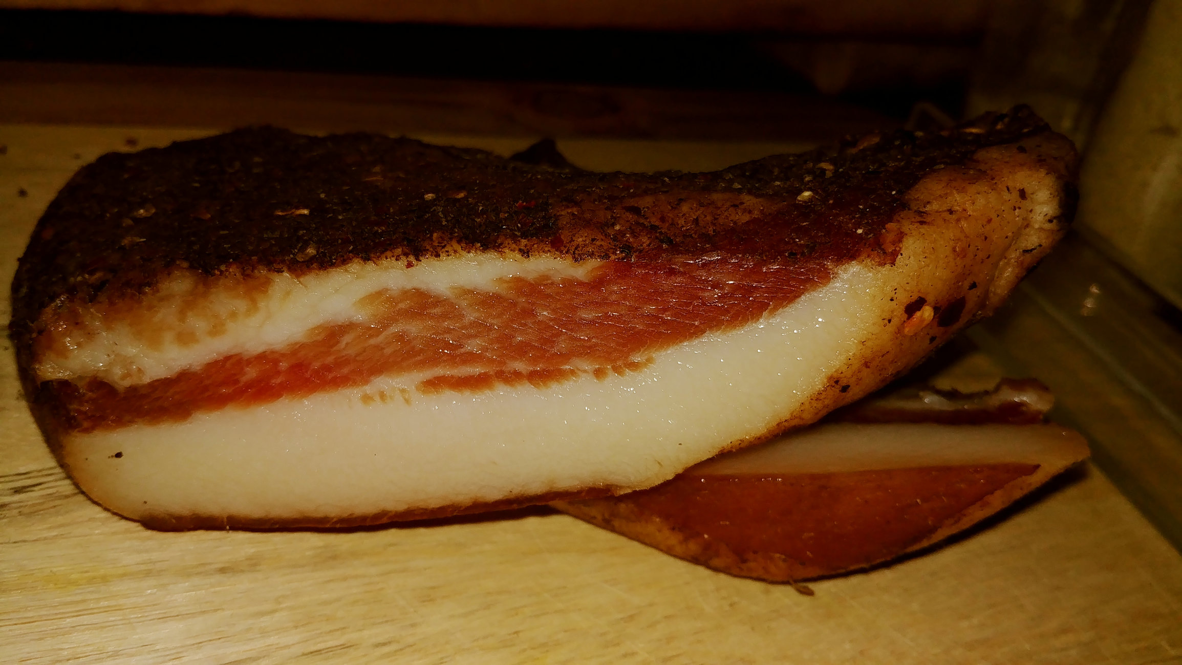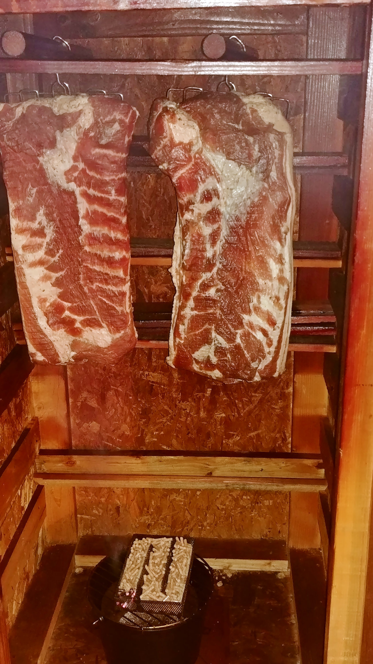 Also, I am very curious to know if there was any smokiness picked up from hanging in the smokehouse. I was thinking of charing a smaller bit full size hickory split and once fully out for a night, place it in my chamber to pick up some notes of smoke. I do not want to smoke the meat per say, but would like to see if I could catch the most subtle of undertones if possible. I thought it might be worth trying. Maybe.
