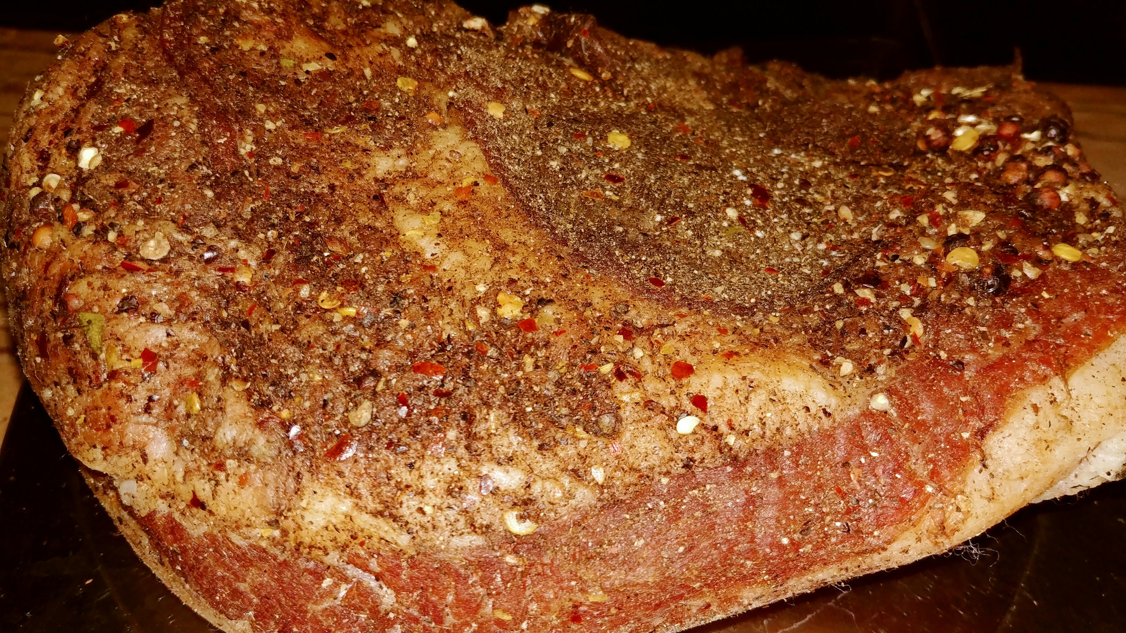 Thank you @Sea2Ski 35% was my target . I don't have a curing chamber but the temp and humidity seemed OK so I just hung it in,my smokehouse outside...I cut into 1 cheek at the 25% mark I couldn't wait