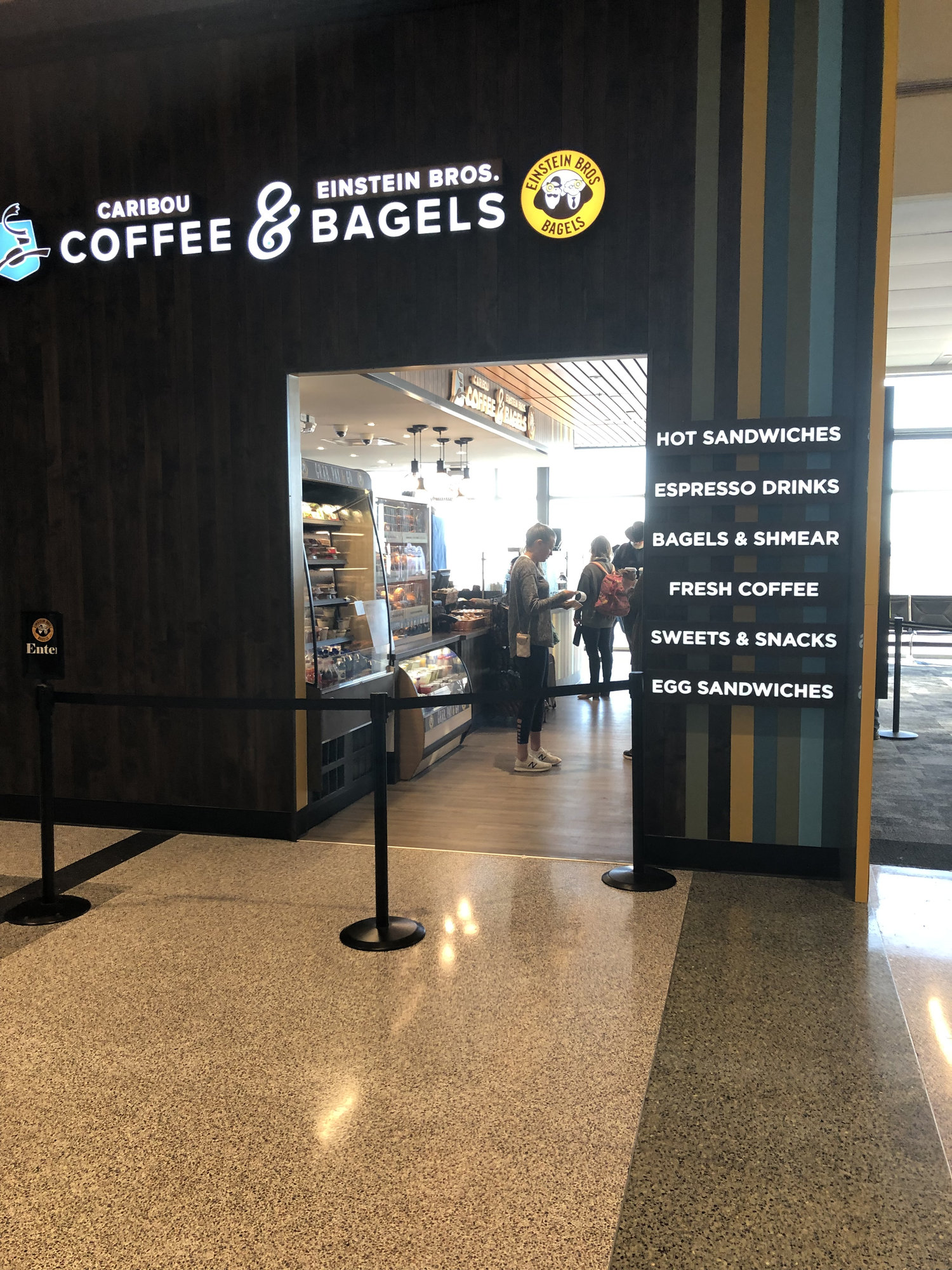 The Einsteins is over by the Waterloo Record Store (~old gate 14 or so), they took at the gift shop and whatever bagel place it was and put in Taco Deli and Einsteins.