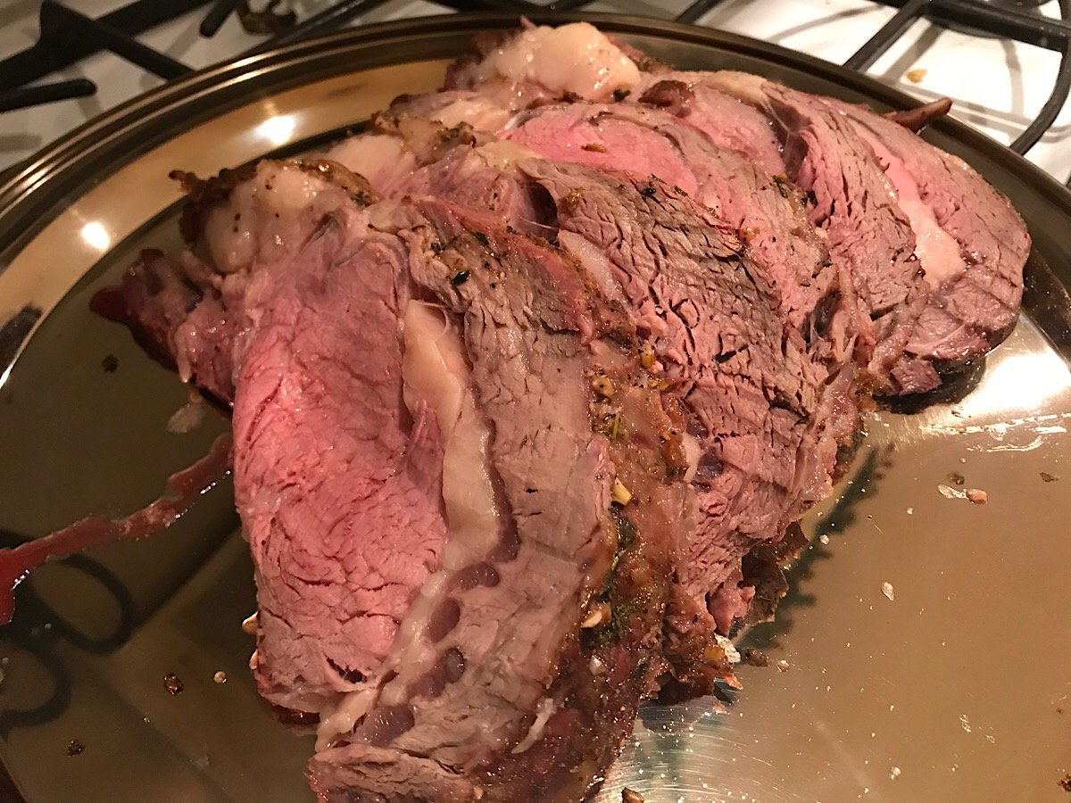 Nice looking roast!!! Since my family is rare/medium rare I was going for less brown on the outside and more medium rare (I've been told rare for a rib roast does not let the fat render properly). I got it to 120 but since it took longer than I thought, only let it rest for about 10 minutes then hit it at 550 for 7-8 minutes so there was a little more medium around the edges creeping into the middle of the roast.