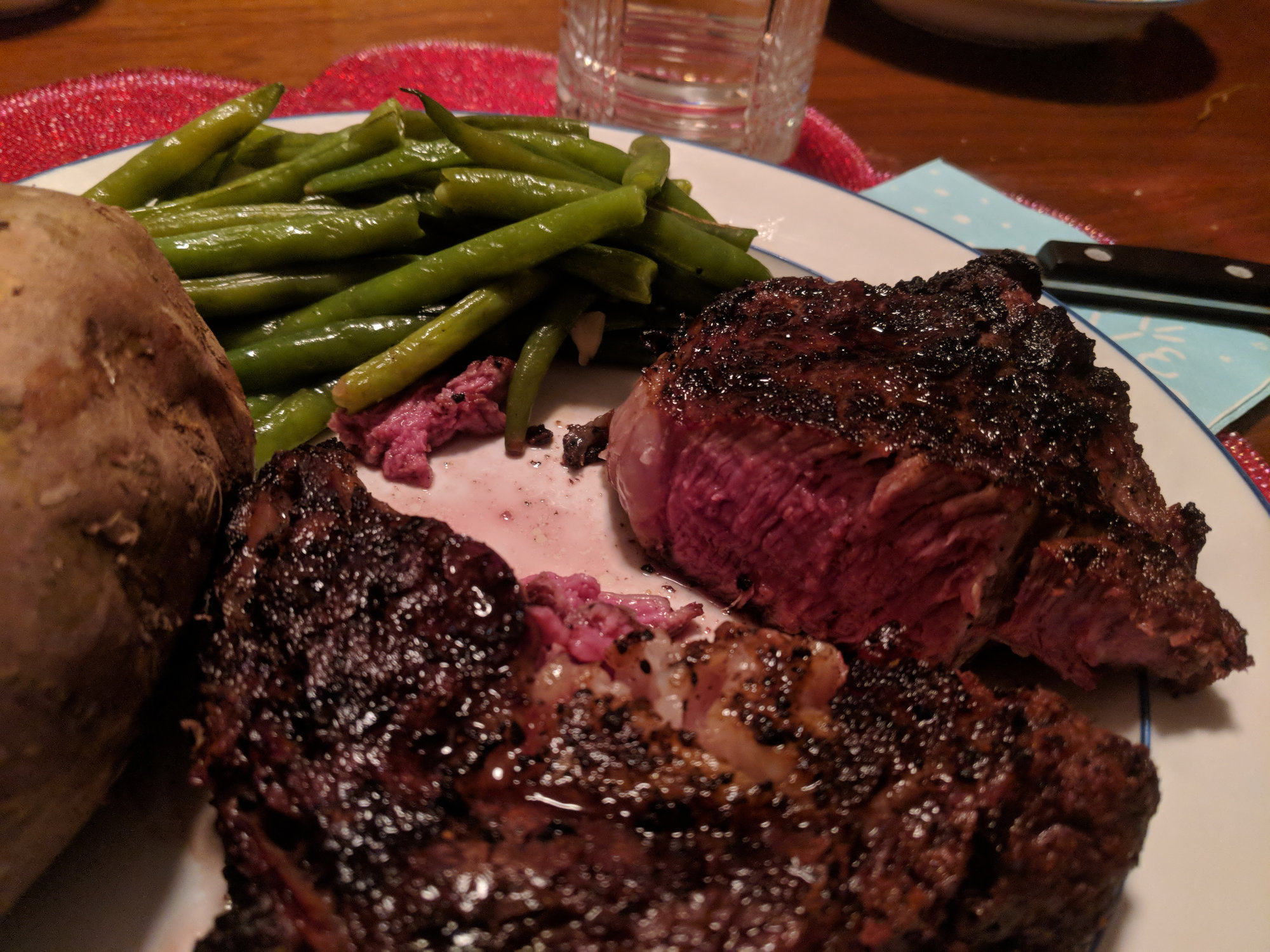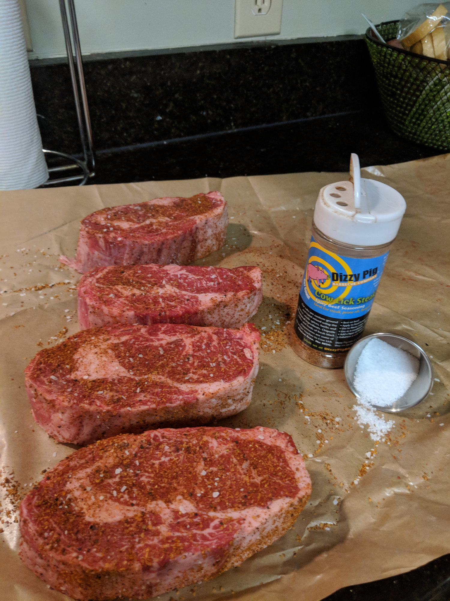 I received the gift of my very own ThermaPen from my sweetie this Christmas and so I used it to help me reverse sear 4 of the most gorgeous USDA Prime Ribeyes you ever did see.