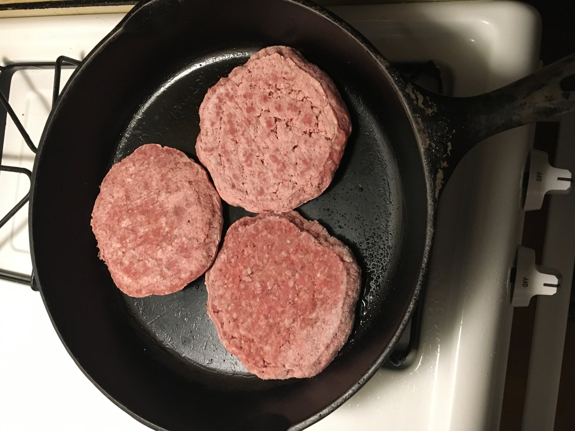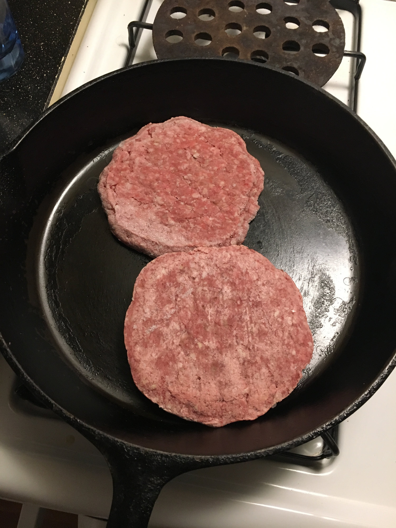 This is tough, as it may not be indicated whether or not you plan on using it inside as well, and how many people. I’m not a big guy, so a #10 which is 12 inches lip-to-lip with a regular handle is all I want to fool with when it’s loaded. I do not want to travel very far and it takes two hands on the handle. I would prefer a D-handle for the egg on this. A #8–10 inch is the most handy. Easy to maneuver. Easy to pick up and bring to the table. Perfect for a couple chic breast, or peppers/onions/potatoes. Here are some pics for size comparison with 1/4 lb burgers from Costco. Cast iron is like screwdrivers. You need a full set.