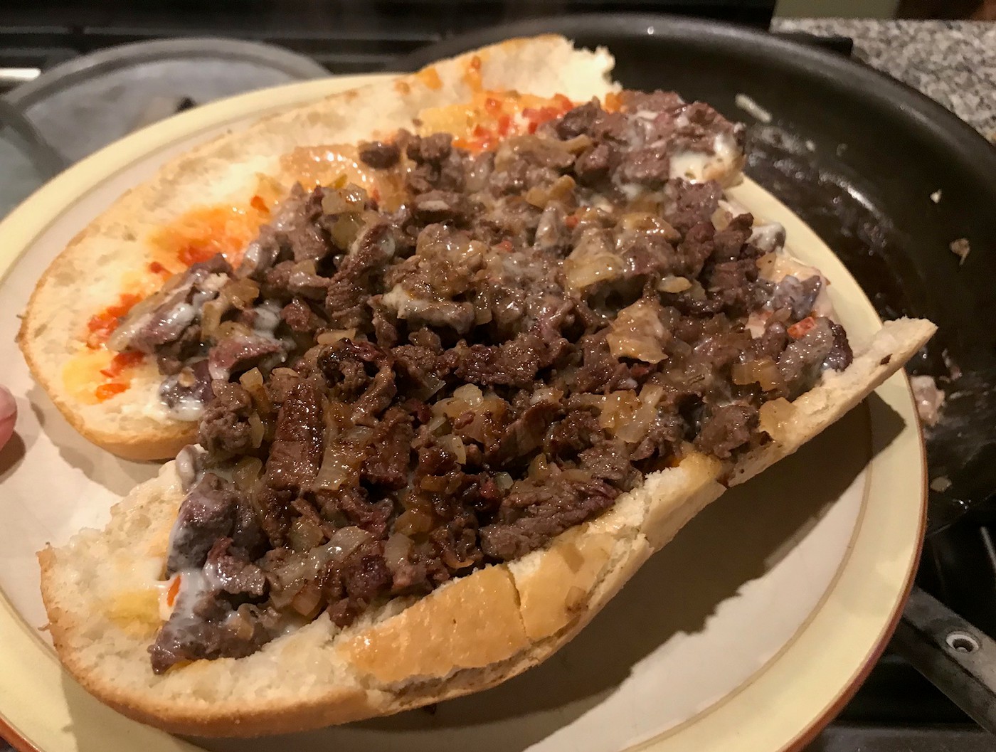 Didn't seem right to risk this leftover filet going old in the fridge, so made a few cheesesteaks today with what was left.
