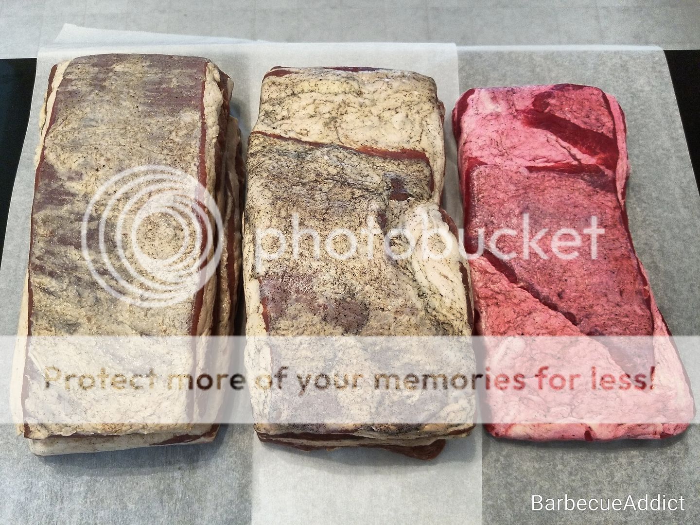 Two of the lamb bellies received herbs de provence, pepper, garlic and onion, with the remaining two receiving char siu and a standard pastrami rub (pickling spice blend, garlic and onion).