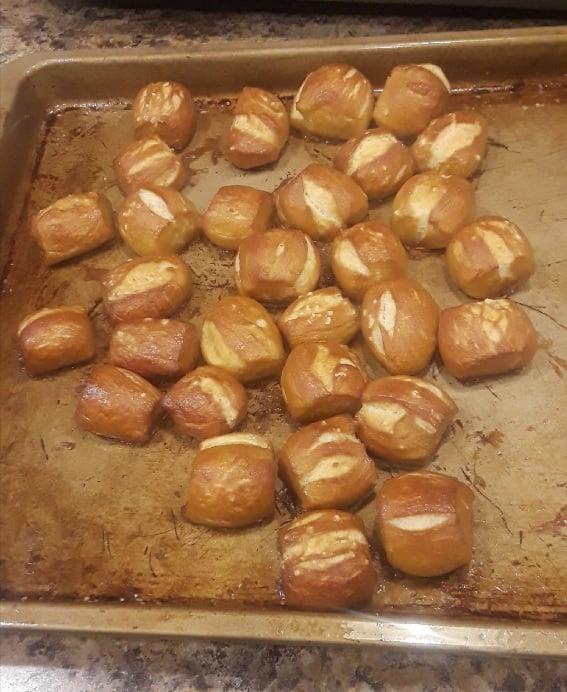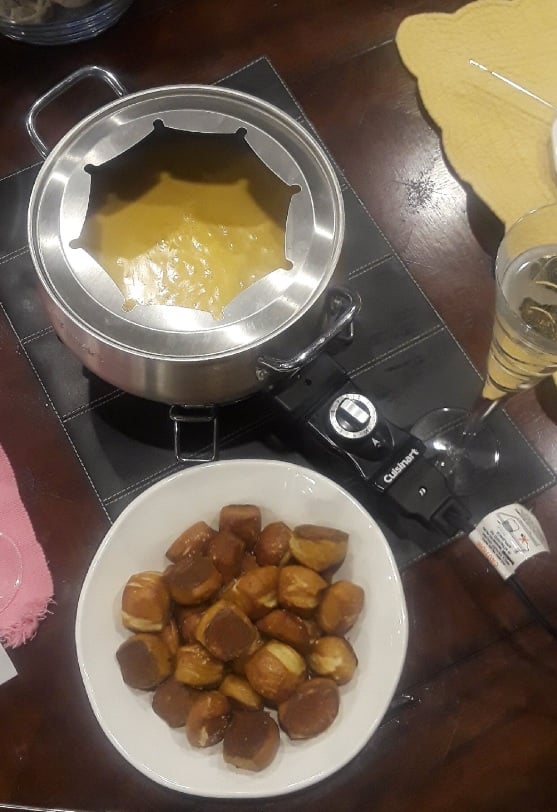 We made homemade pretzel bites with a beer cheese fondue for an appetizer. Cheeses were sharp cheddar and gruyere, and we used one cup of very hoppy ale for some bite: