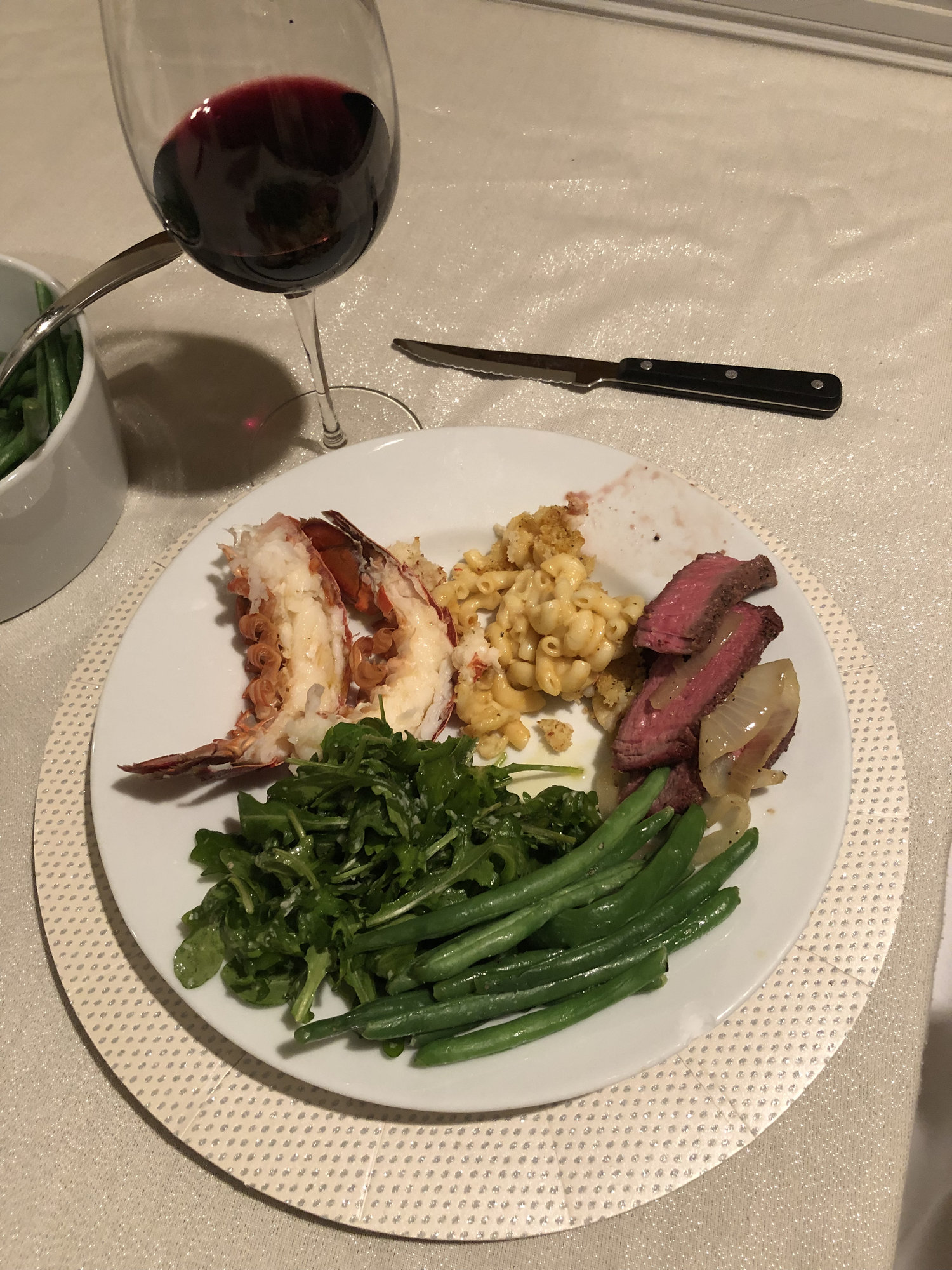 Filets, Ribeyes, lobster tails, veg, and lobster Mac and cheese from the Instant Pot