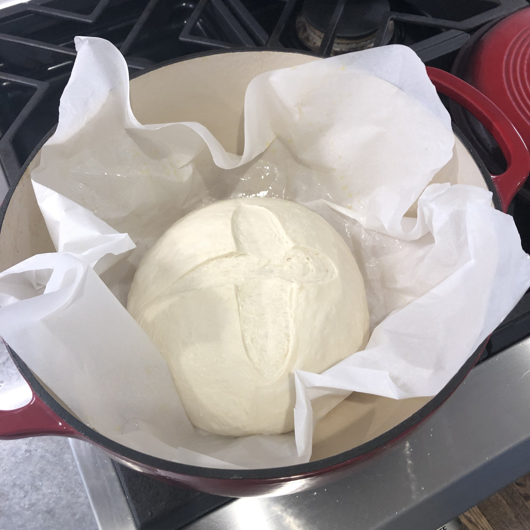 If you're not measuring the flour by weight, you're doing yourself a disservice. I weigh the dry ingredients (flour, gluten, salt and yeast. Liquids are by volume (wildflour honey for the sugar and then water and some EVOO).